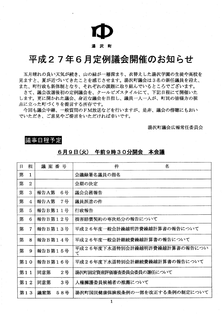 湯沢町議会 6月定例会 案内