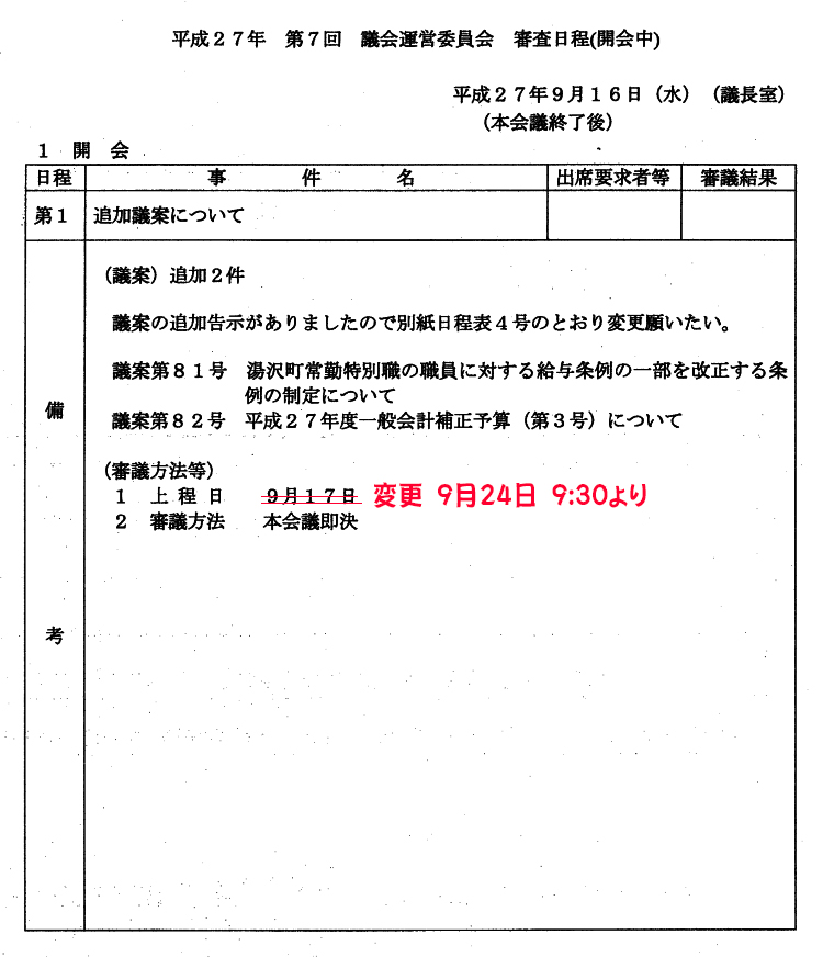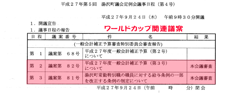 湯沢町議会 ワールドカップ関連 発議 本会議