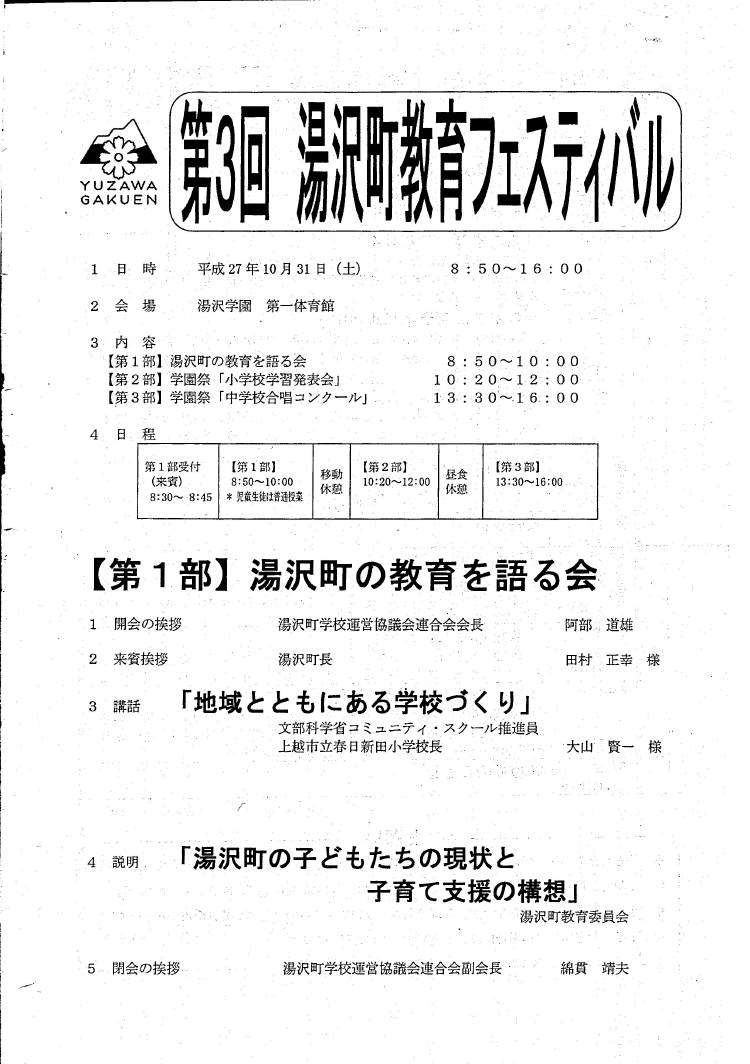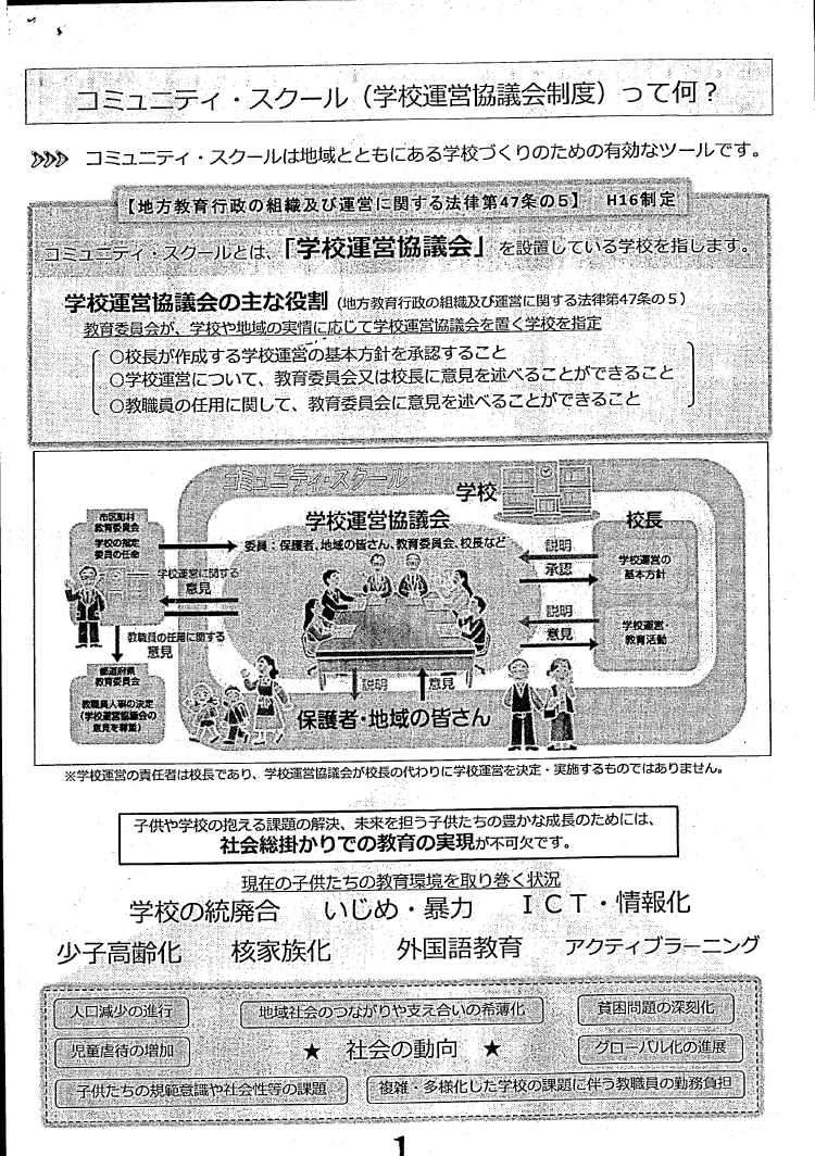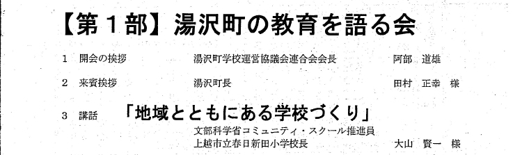コミュニティ・スク-ルにおいてオール湯沢で子どもを育てて行く。