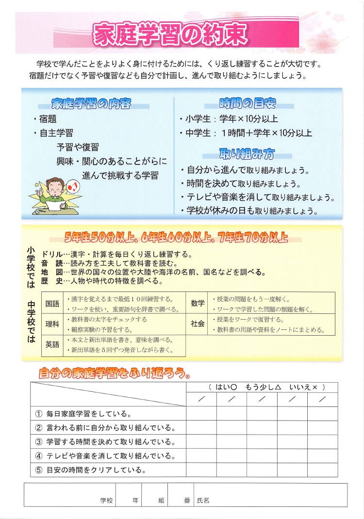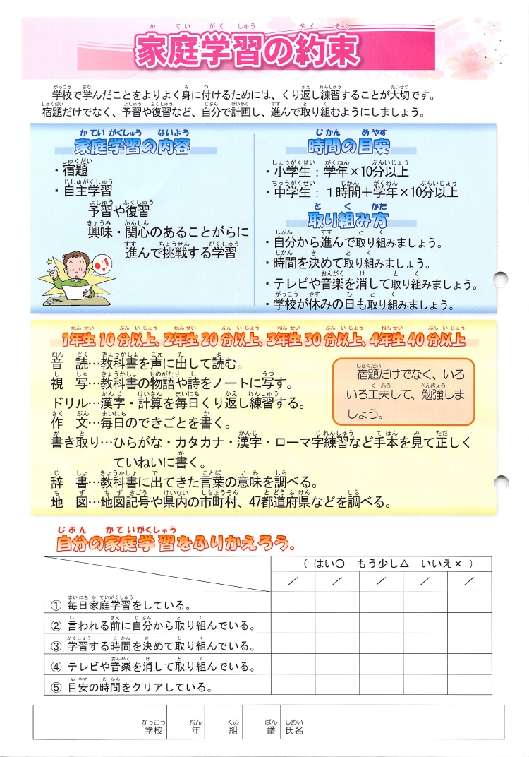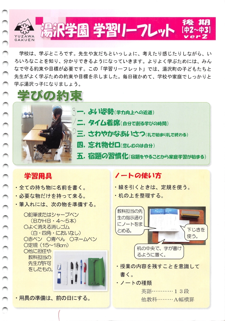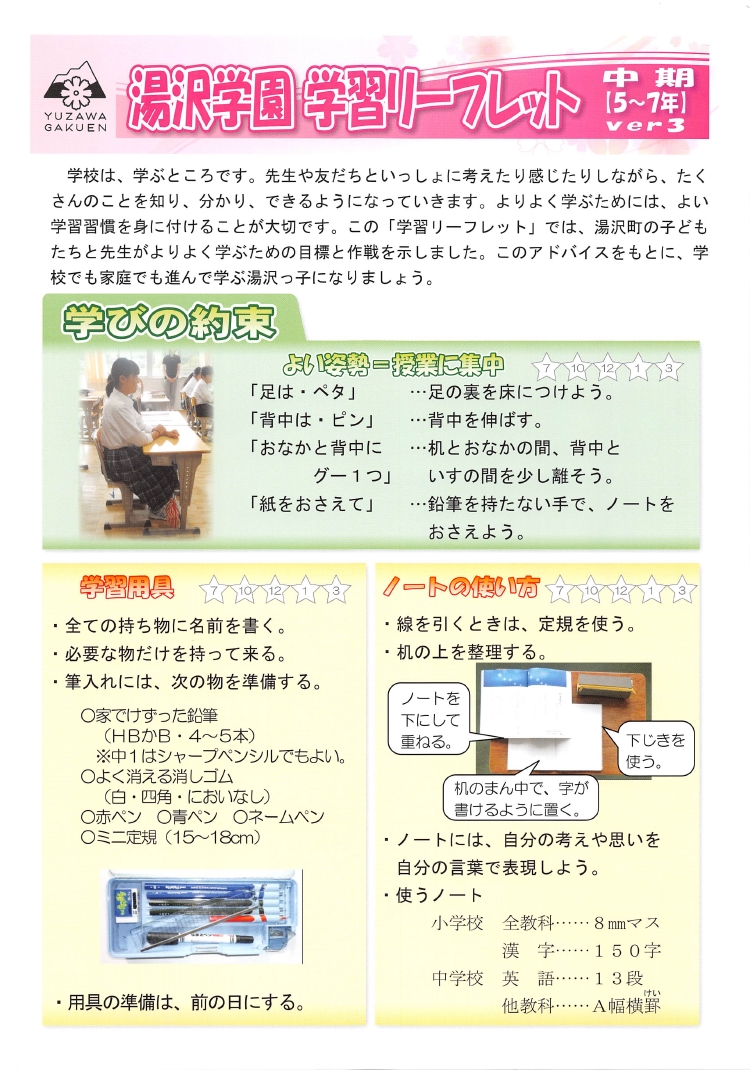 湯沢学園 学習リーフレット 1年~4年 5年~7年 8年~9年