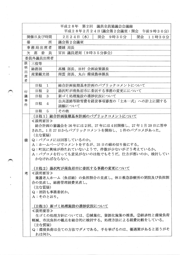 湯沢町総合計画後期基本計画のパブリックコメントの状況 PDF 湯沢町WEB