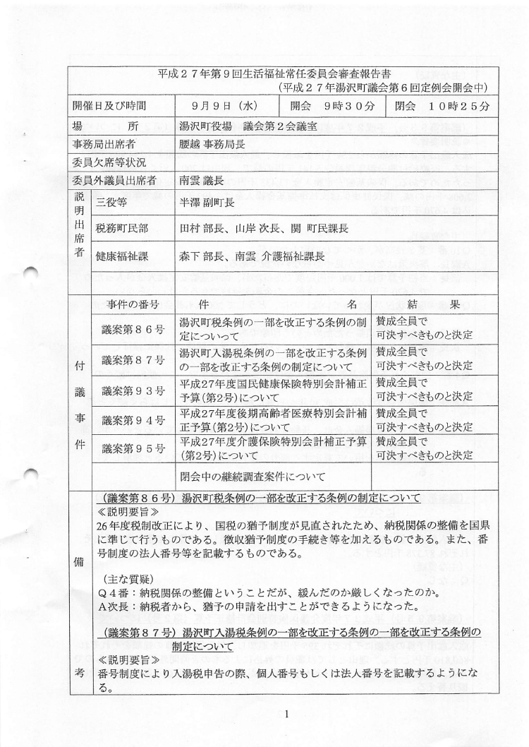湯沢町議会9月定例会