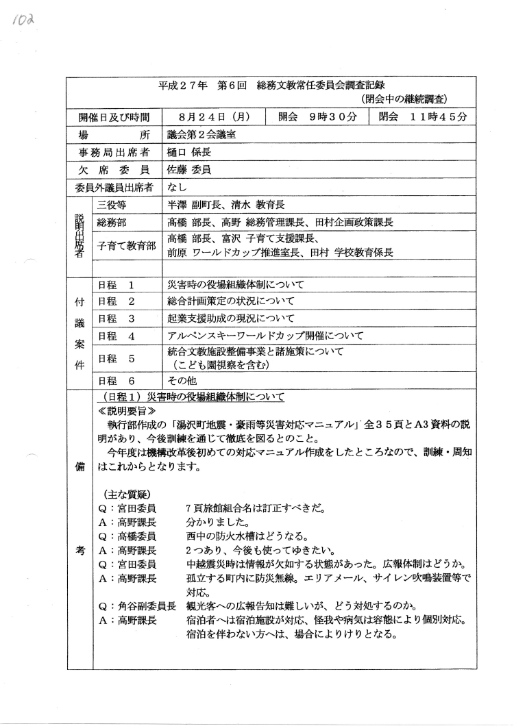 総務部、子育て教育部、議会事務局、選挙管理委員会、監査委員、固定資産評価審査委員会、