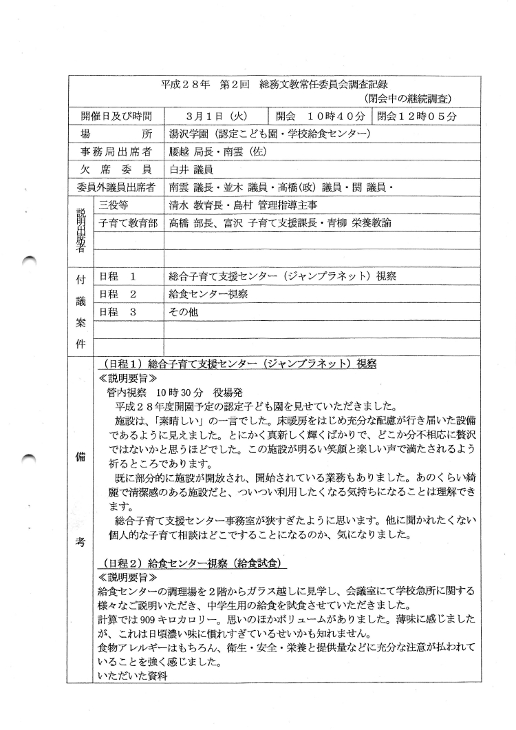 総務文教常任委員会 H28 第2回