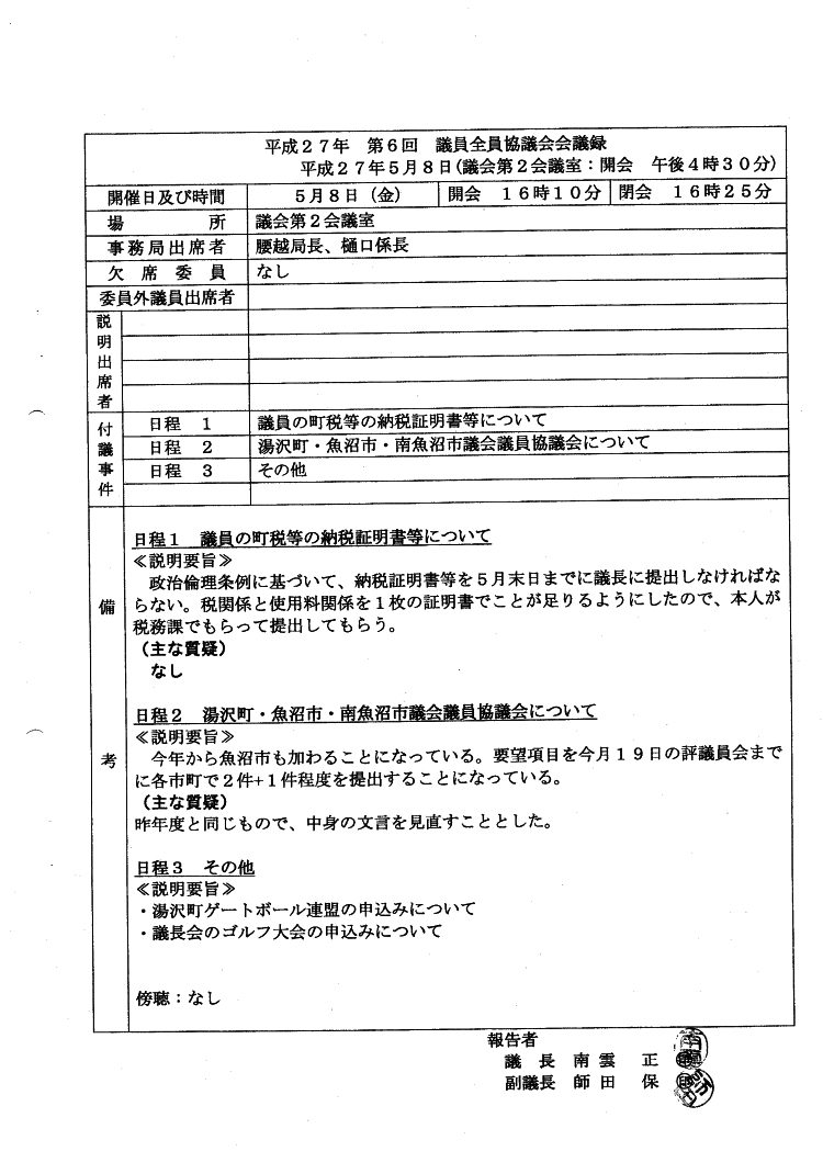 湯沢町議会 全員協議会