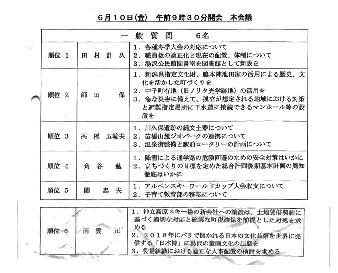 湯沢町議会 6月定例会取りあえず結果のみ。 後で詳細は追加していきます。