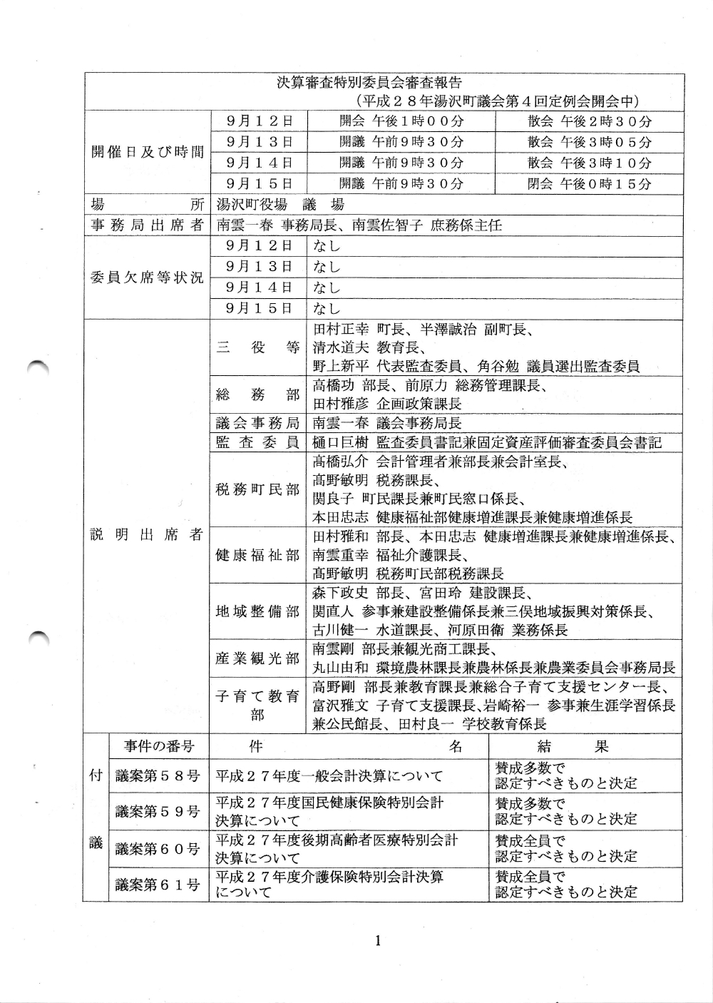 決算審査特別委員会 H28年 2016/09/12~2016/09/15