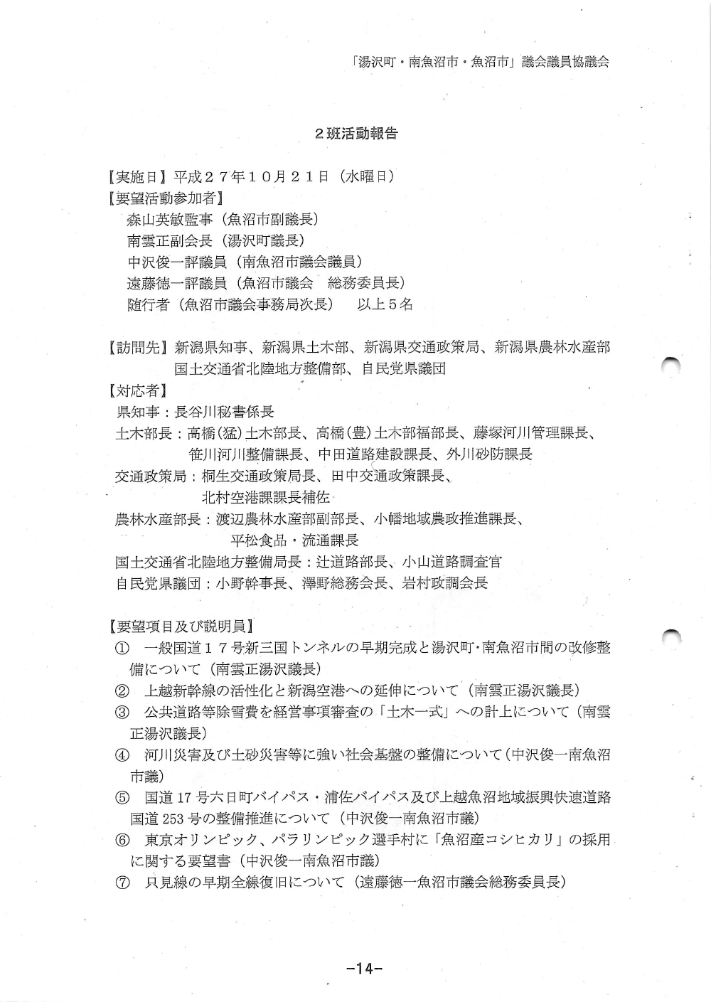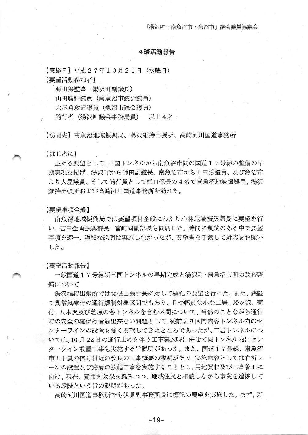 湯沢町 南魚沼市 魚沼市 議会議員協議会