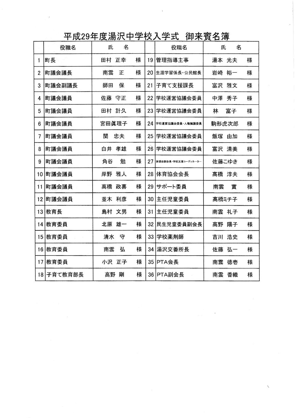 平成29年度 湯沢中学校 入学式