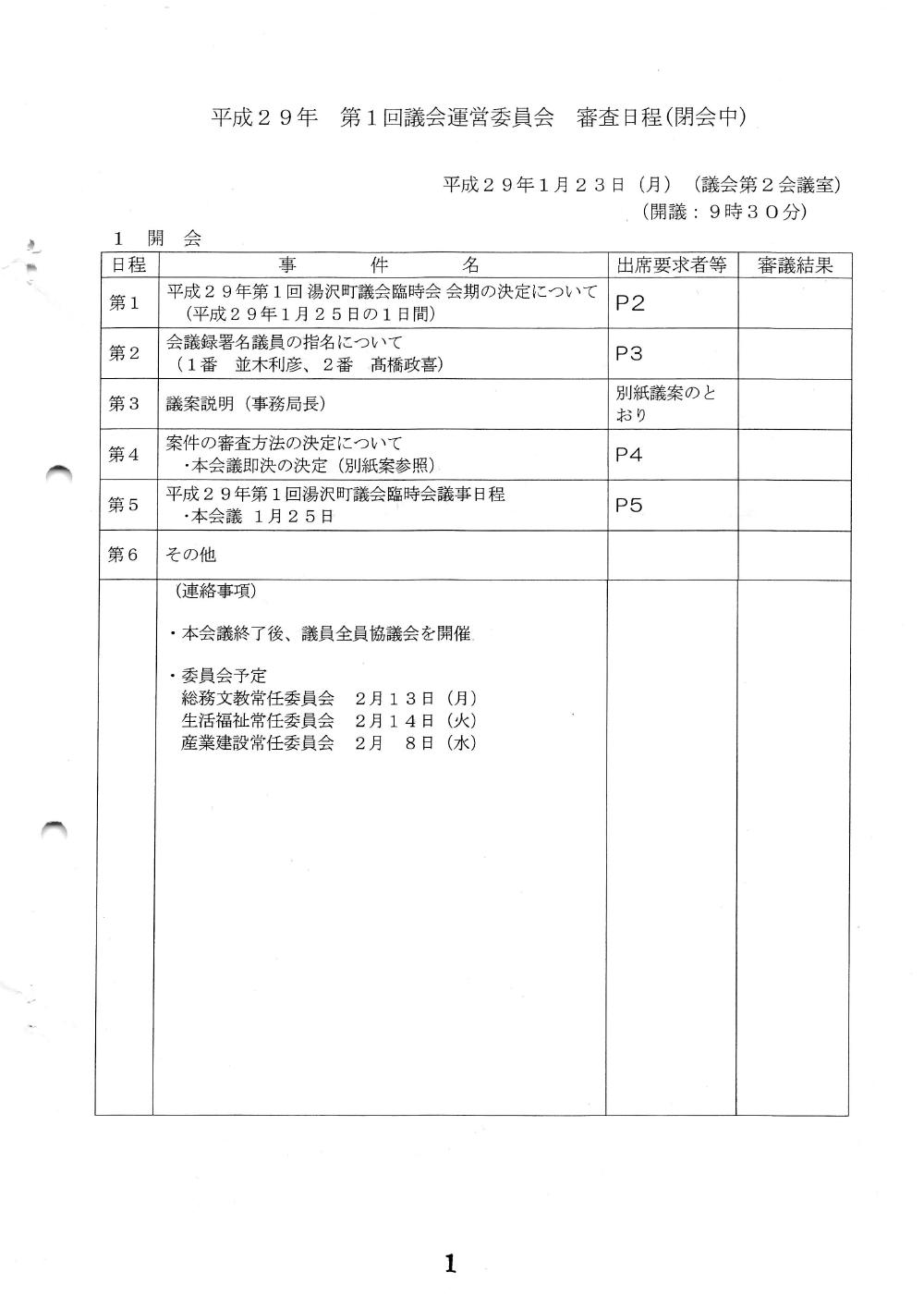 議会運営委員会 H29年 第1回 2017/01/23