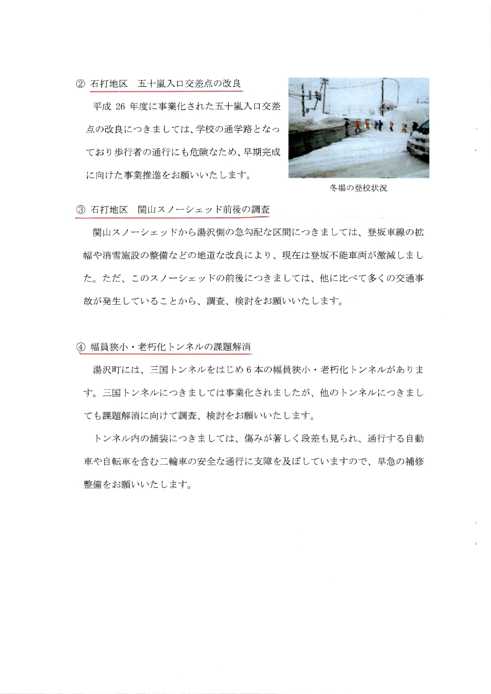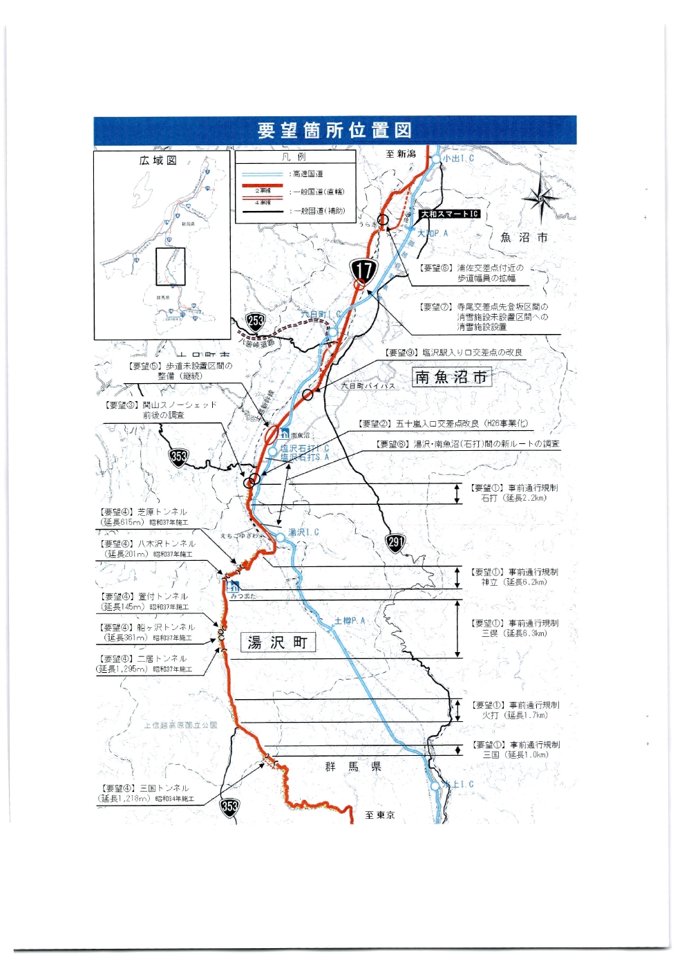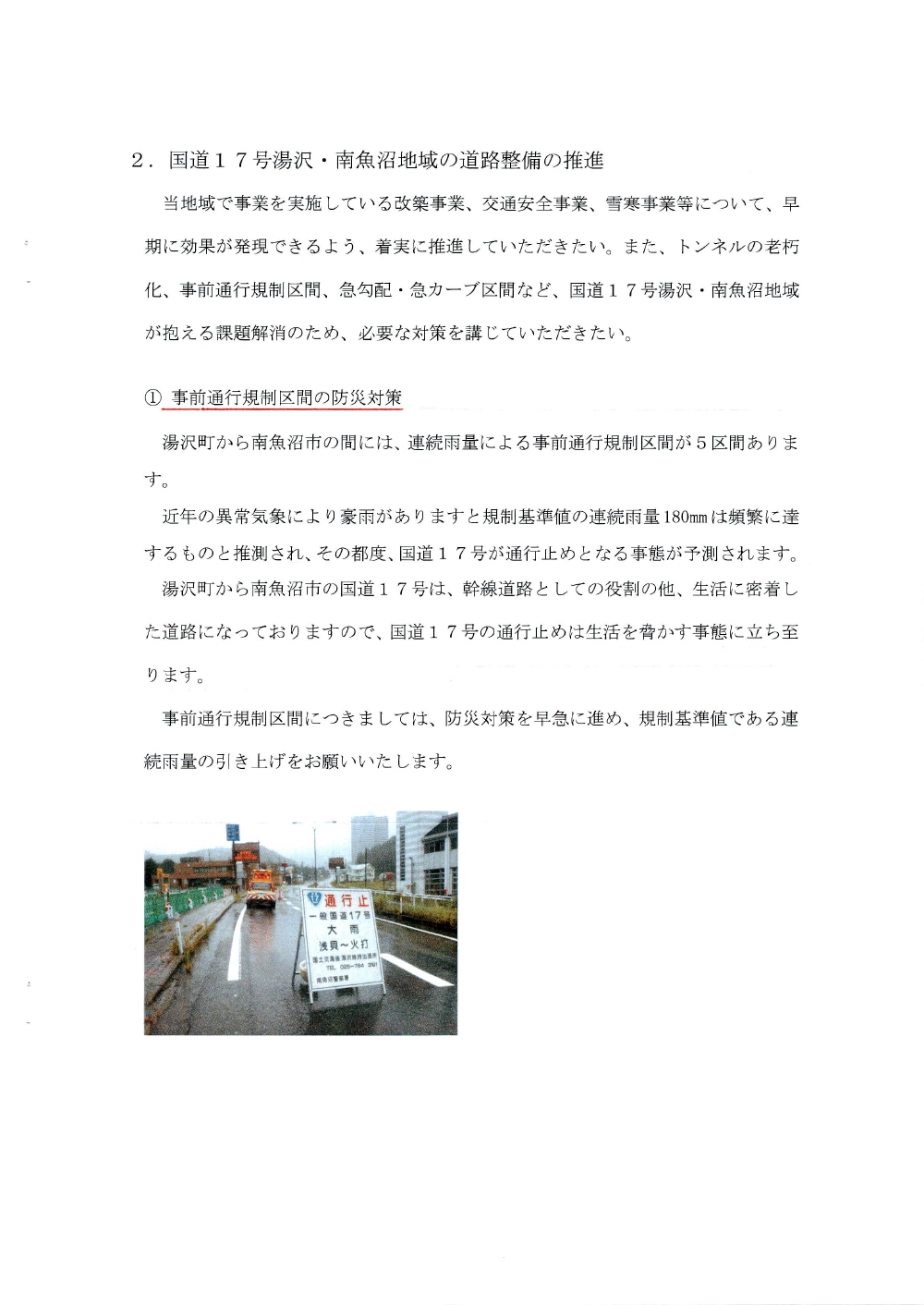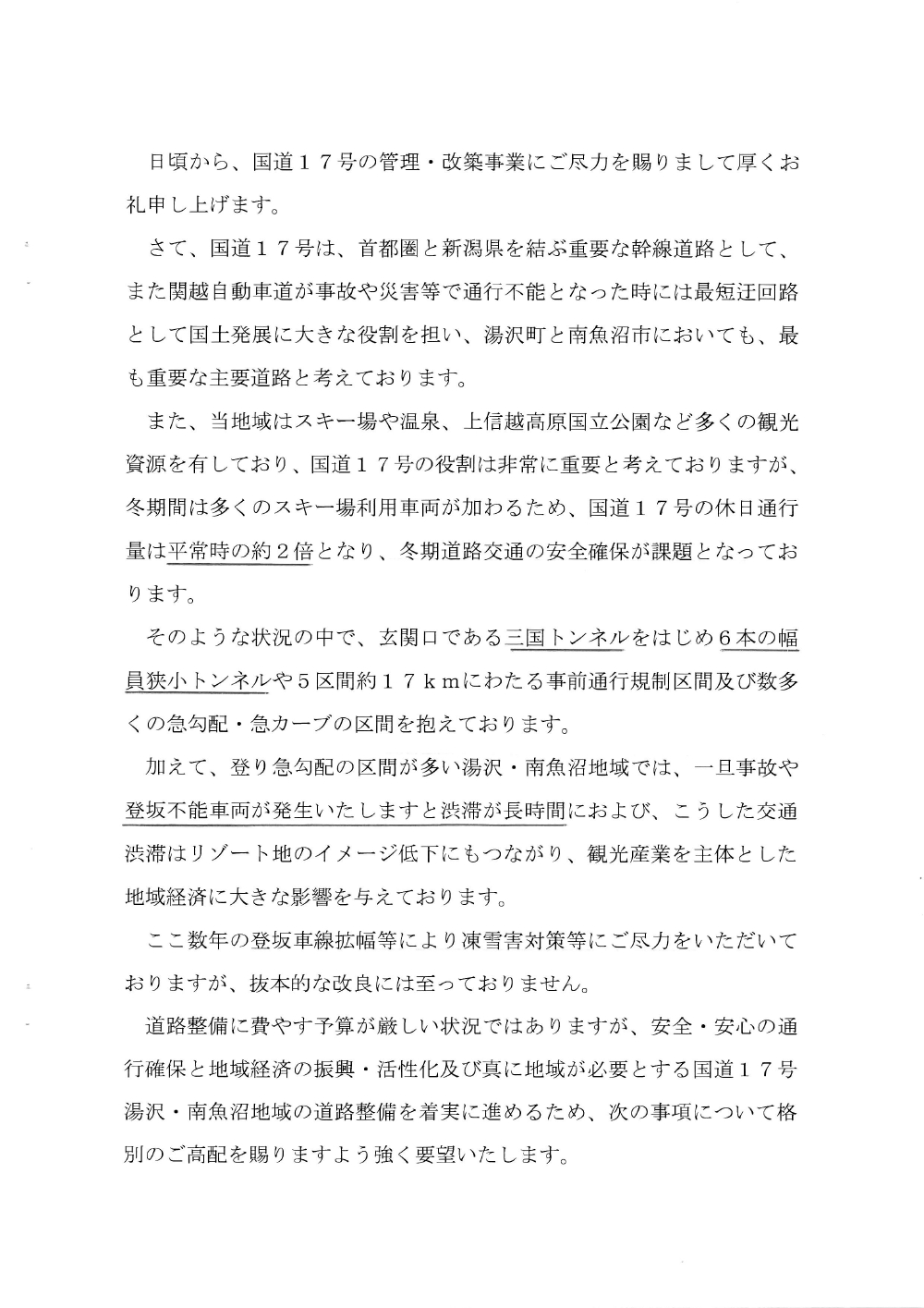 国道17号湯沢南魚沼地域の道路整備促進に関する要望書