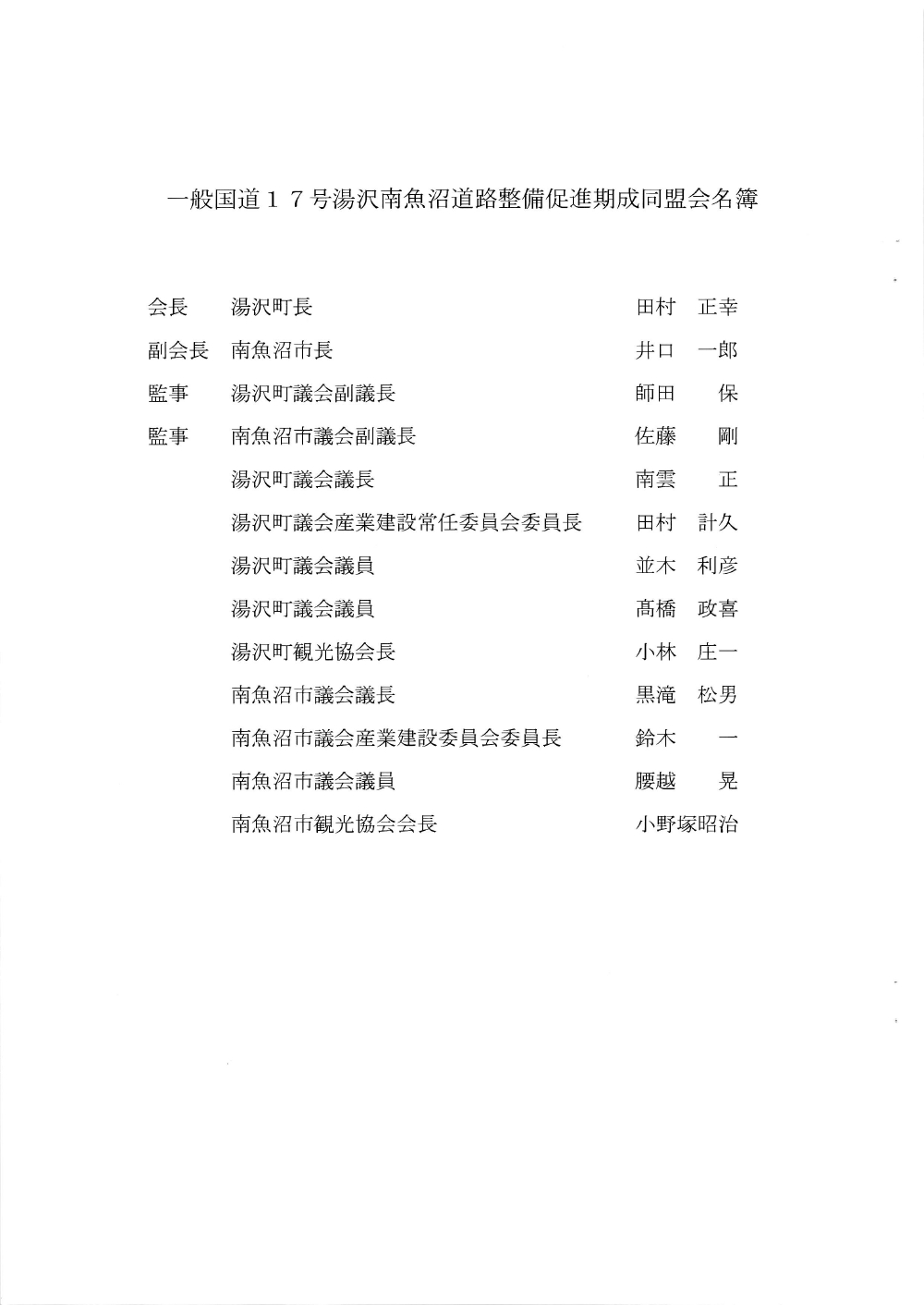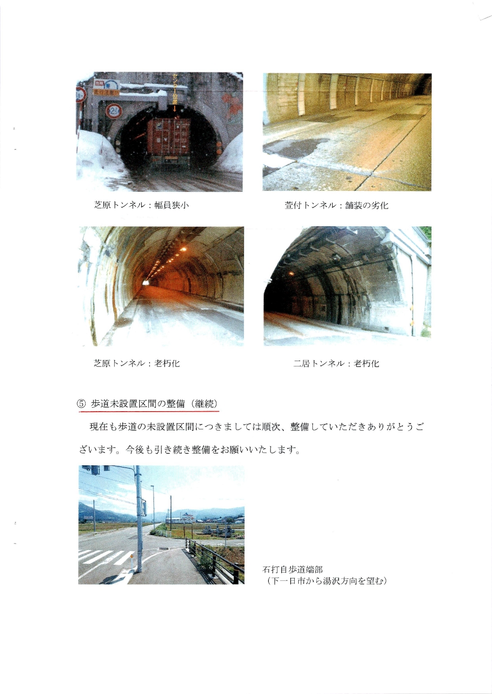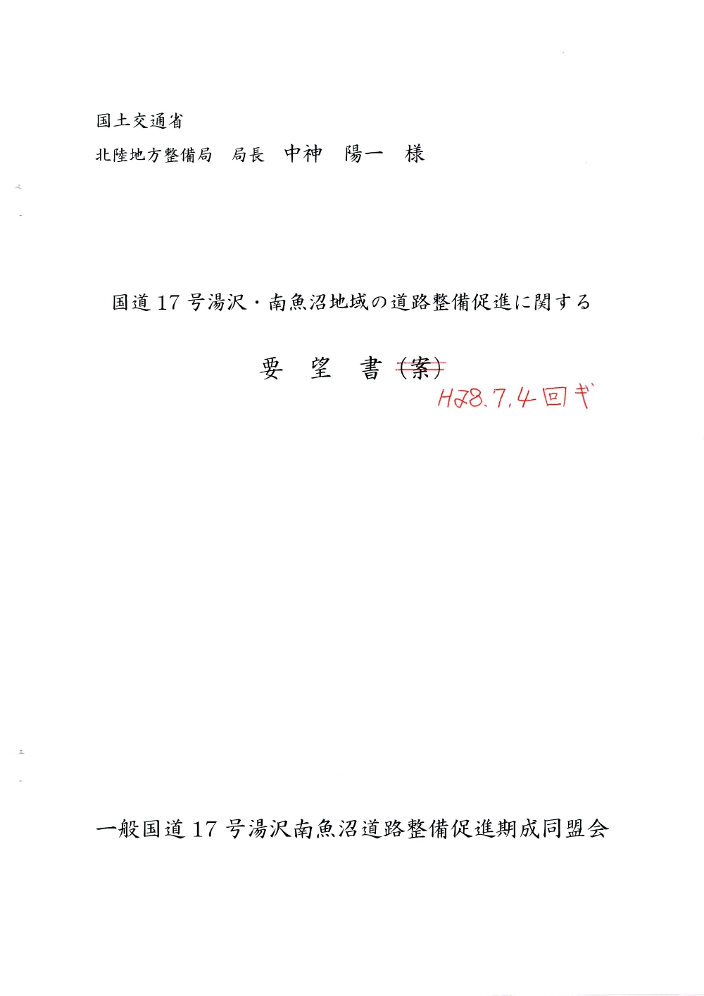 国道17号湯沢南魚沼地域の道路整備促進に関する要望書