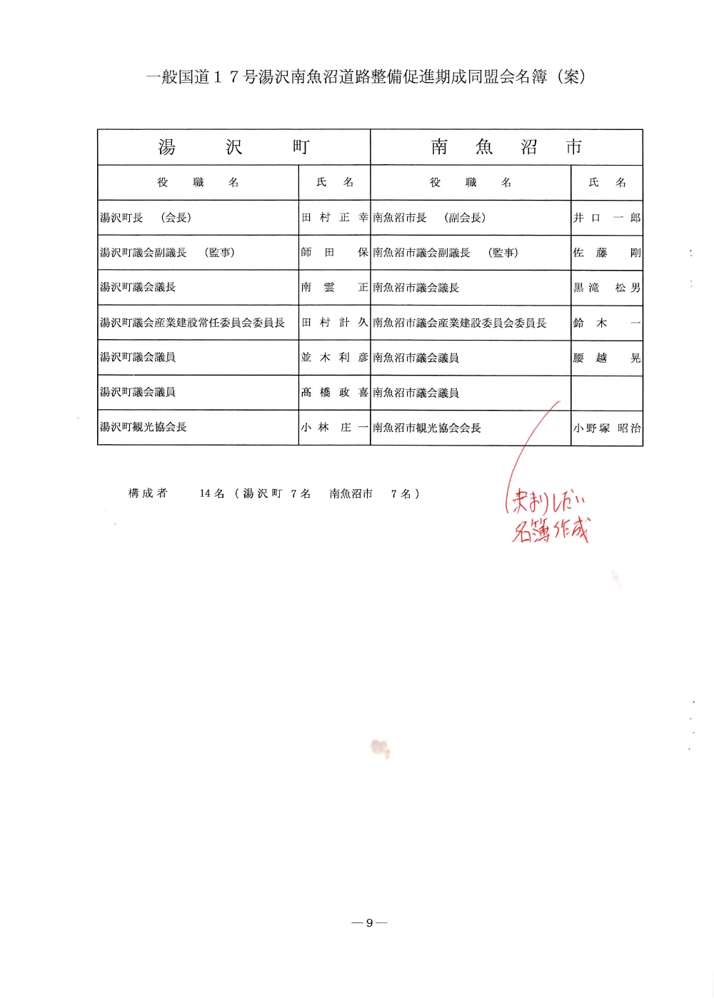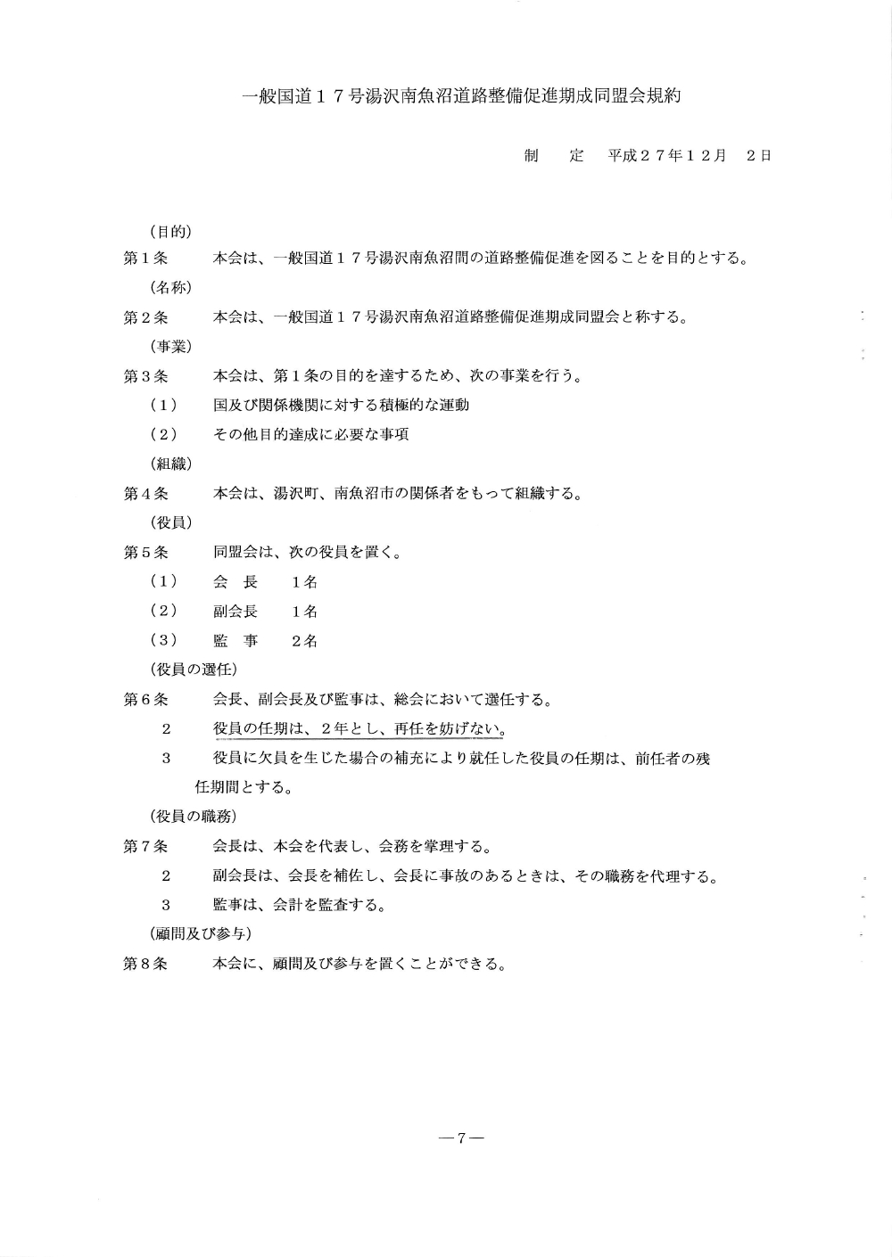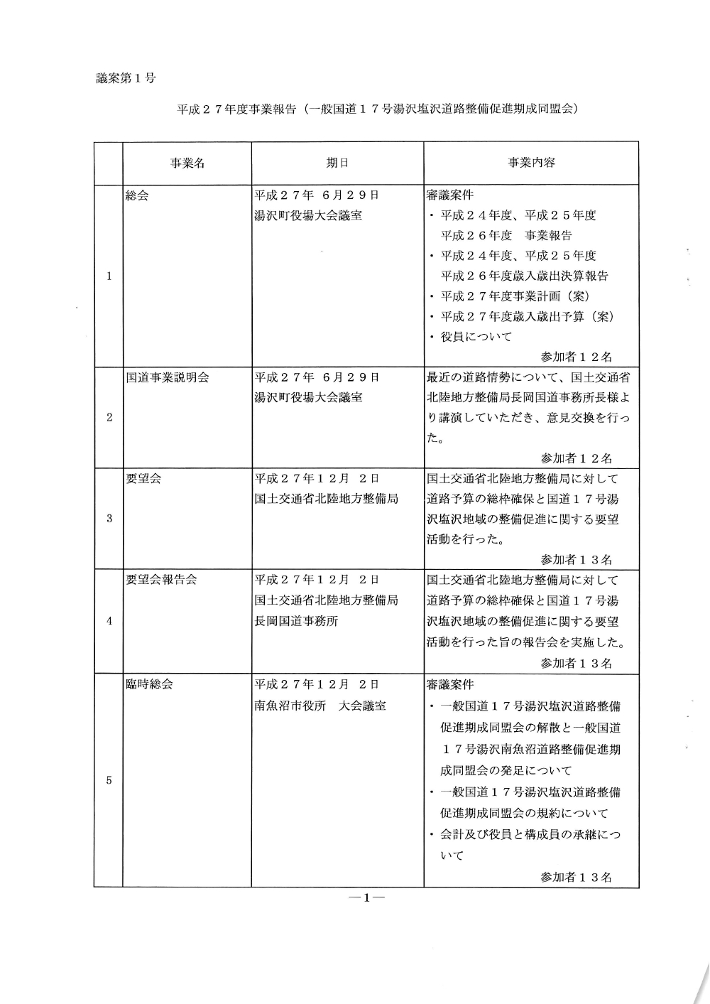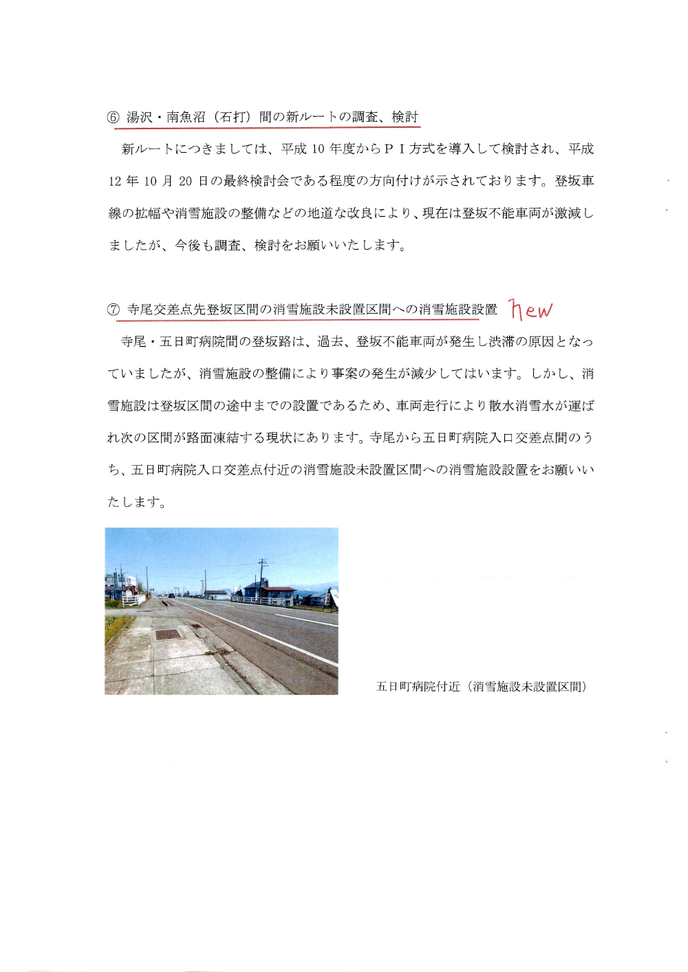 国道17号湯沢南魚沼地域の道路整備促進に関する要望書