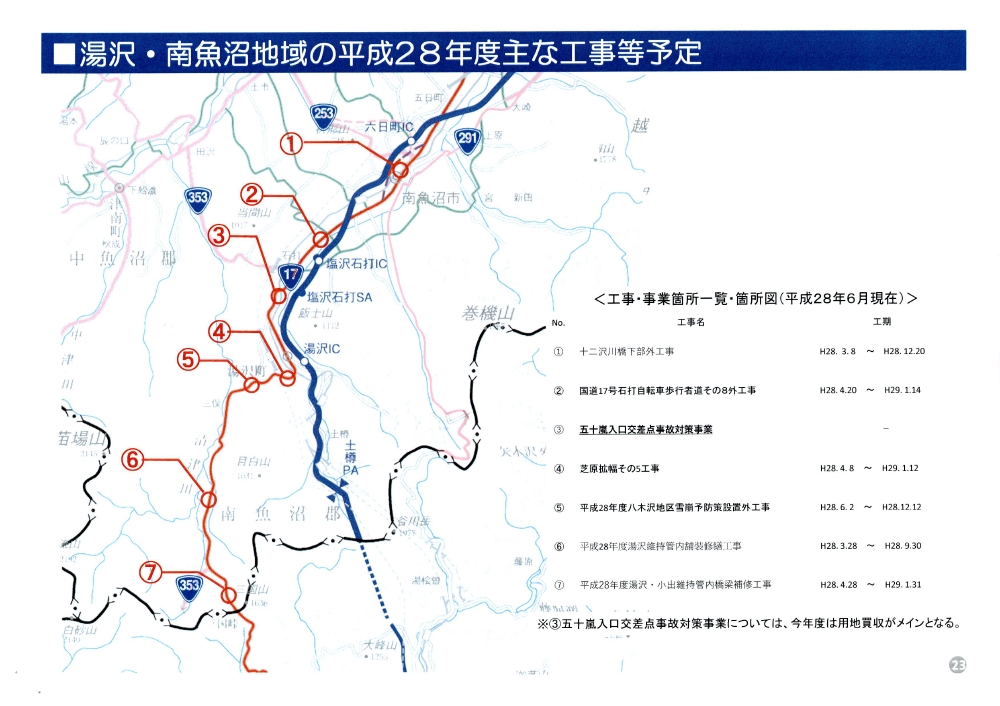 国道17号湯沢南魚沼地域