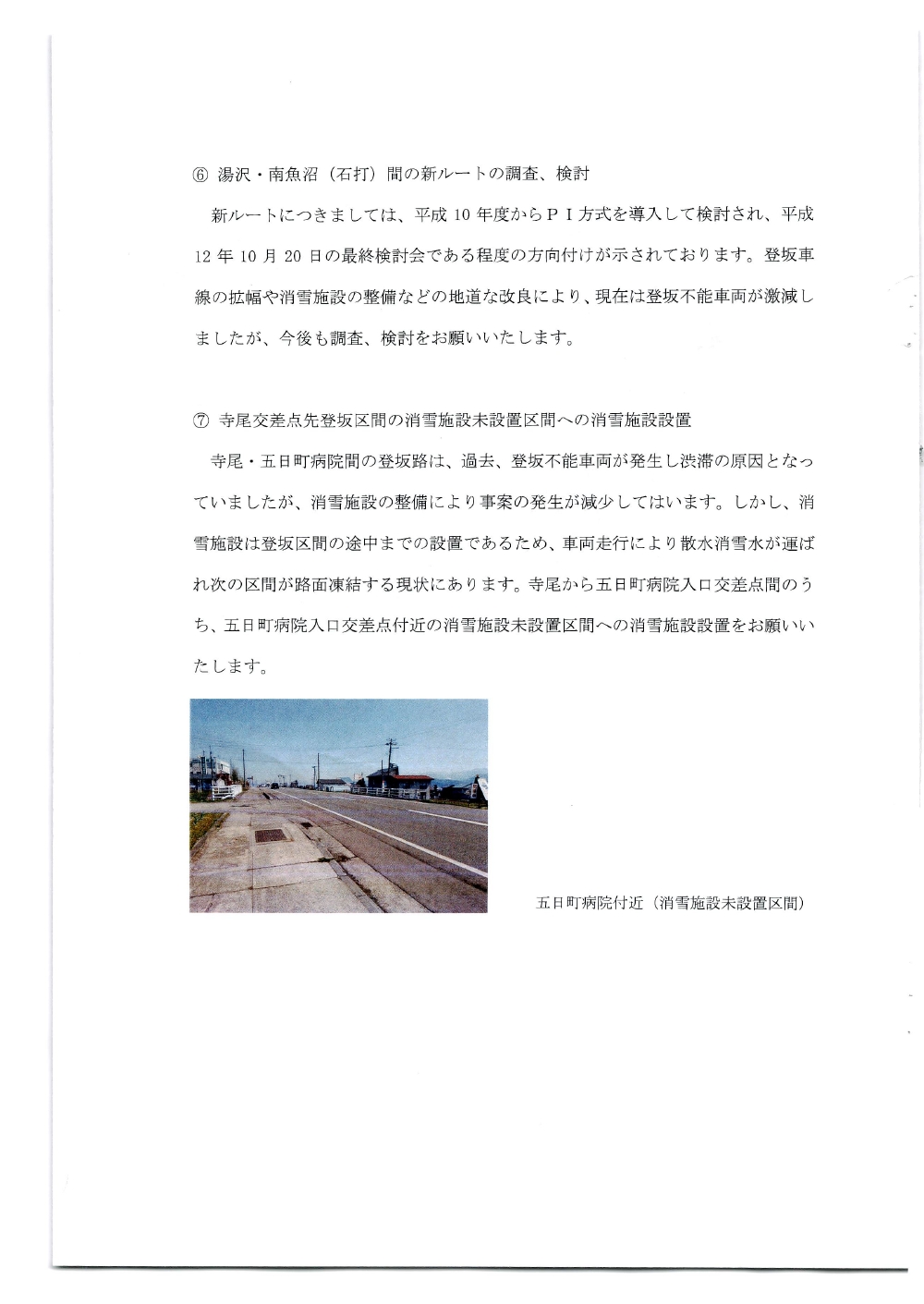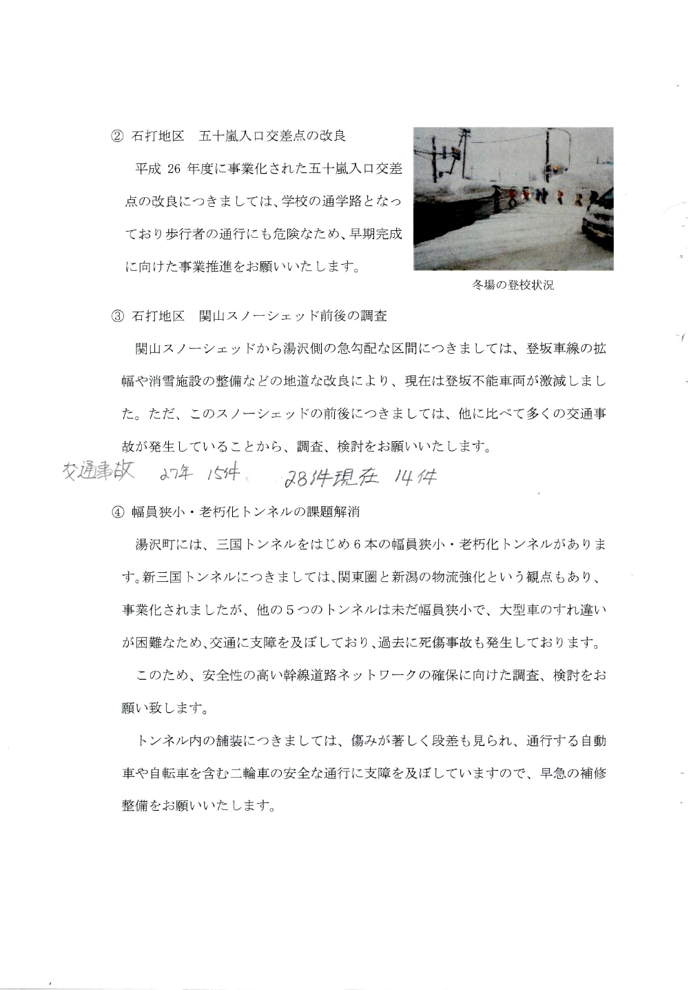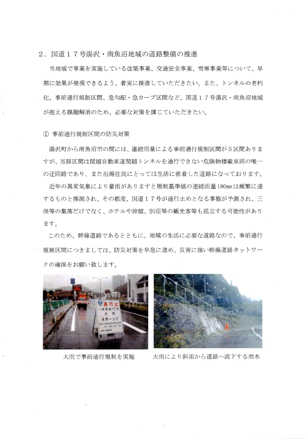国道17号湯沢・南魚沼地域の道路整備促進に関する要望書