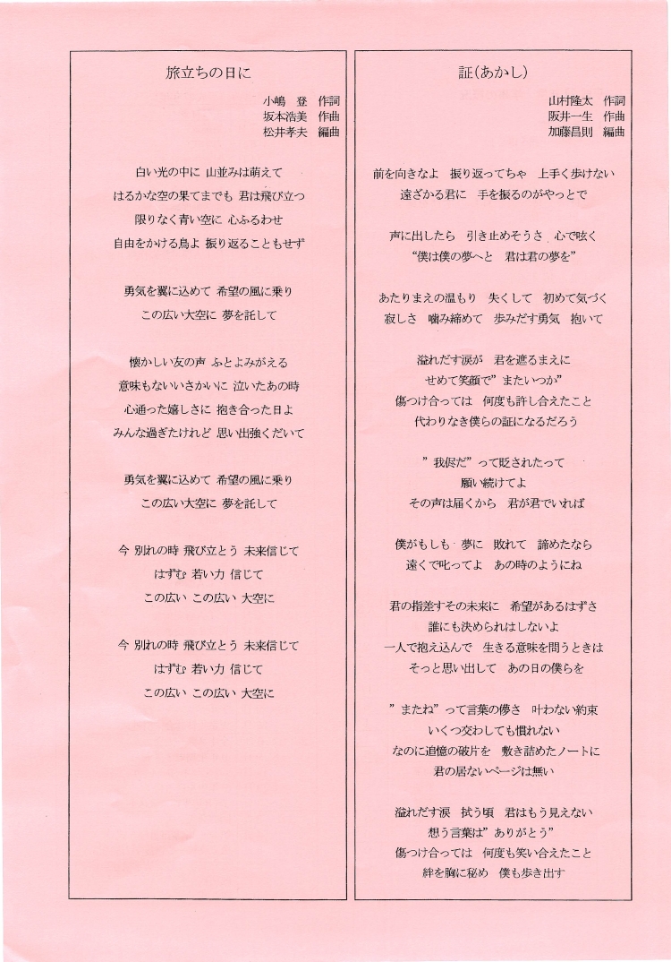卒業生の皆様、おめでとうございます。立派な卒業式だったと思います。関係各位の皆様ご苦労様でした。