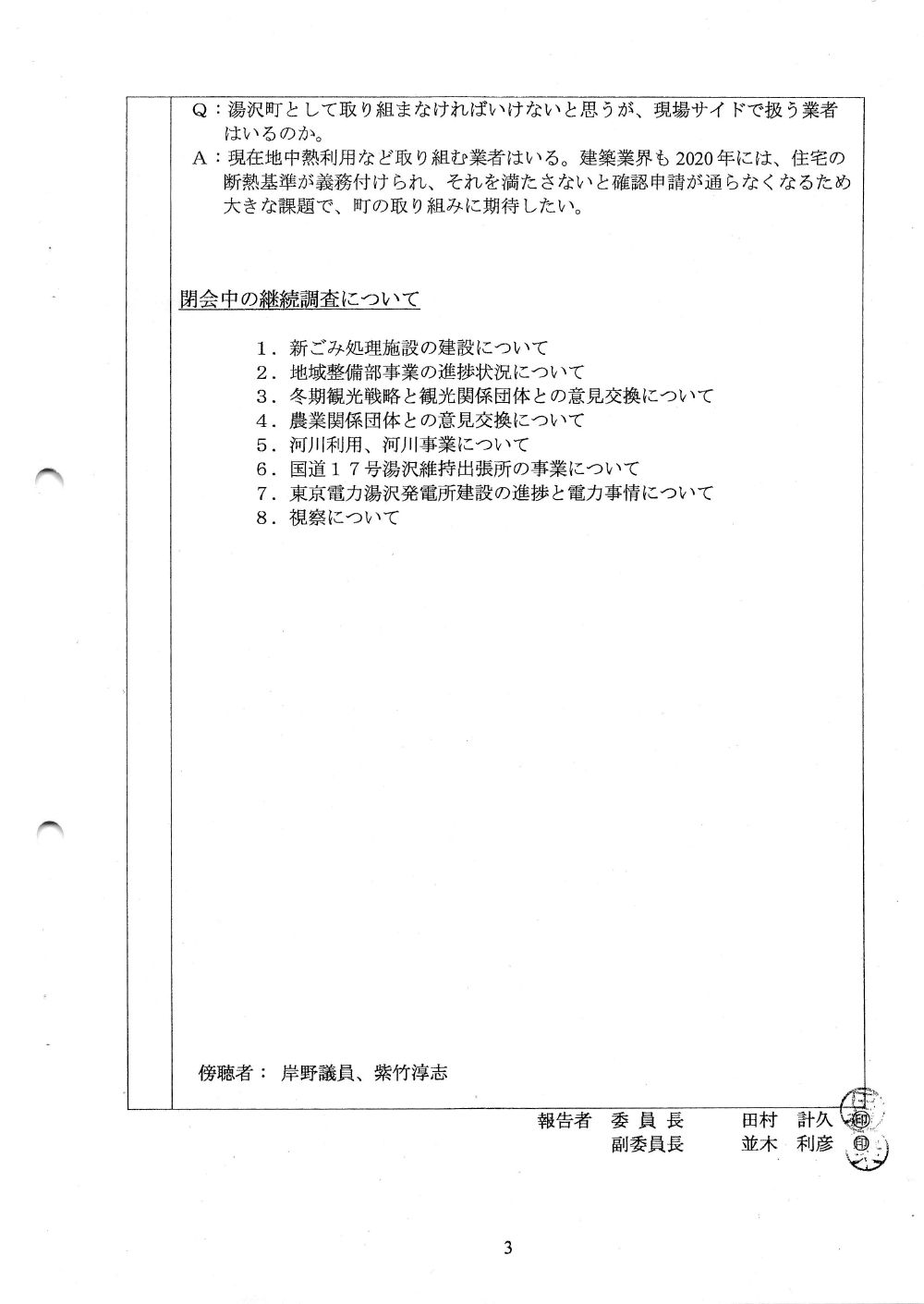 湯沢町議会09月臨時会