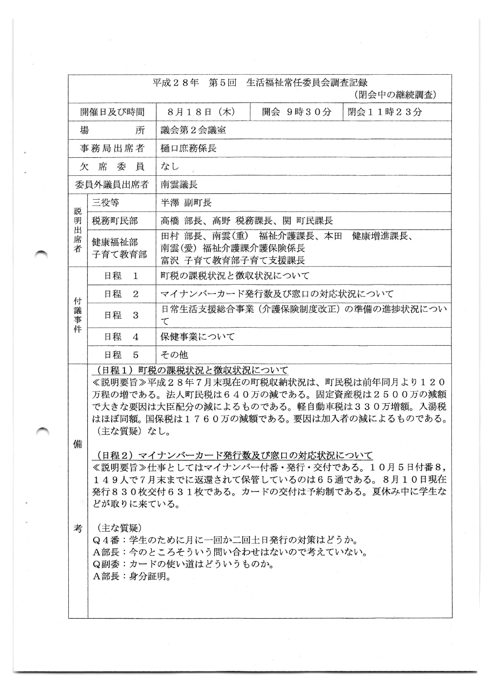 生活福祉常任委員会 H28年 第5回 8/18