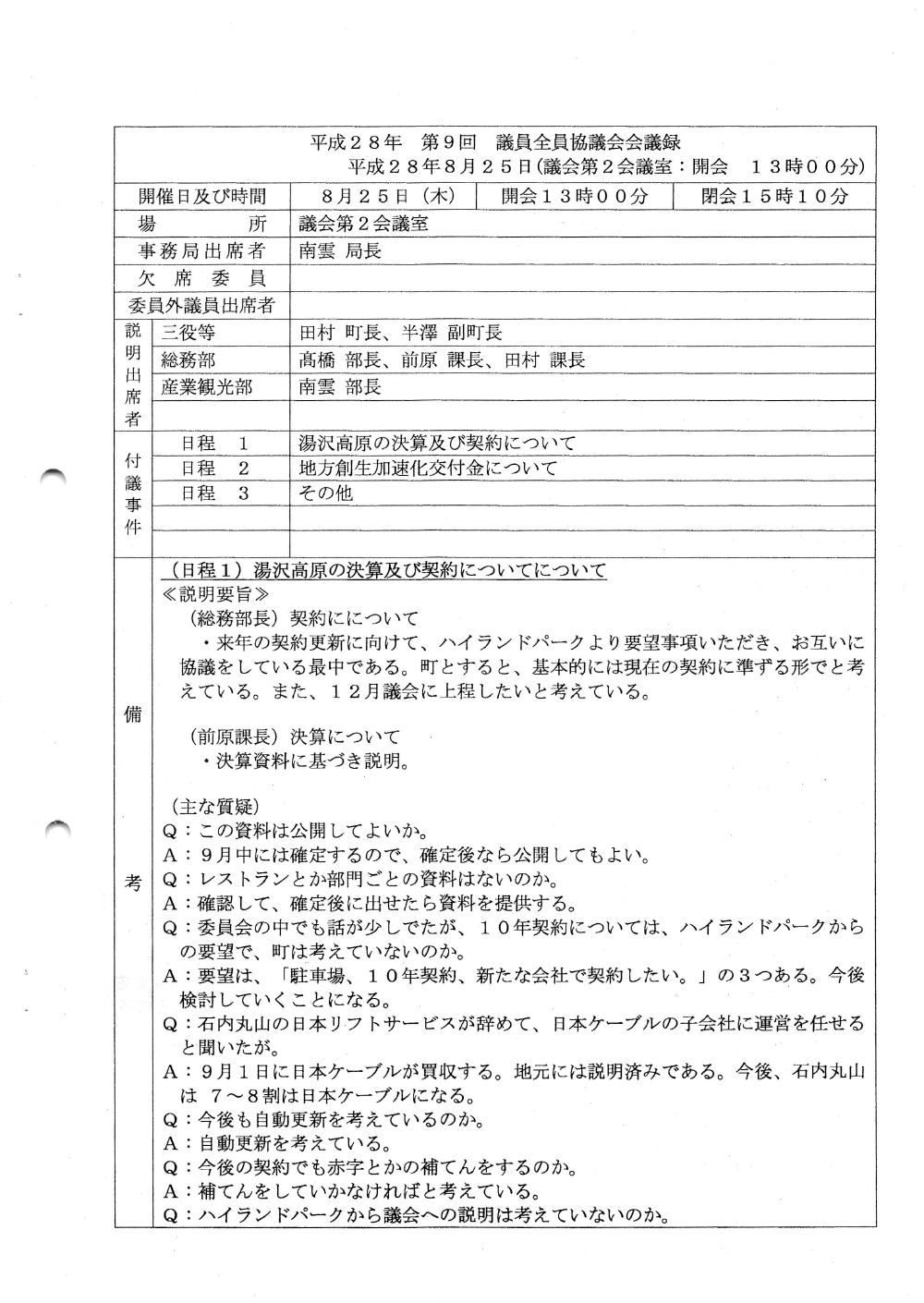 議員全員協議会 H28年 第9回 2016/08/25後で詳細は追加していきます。