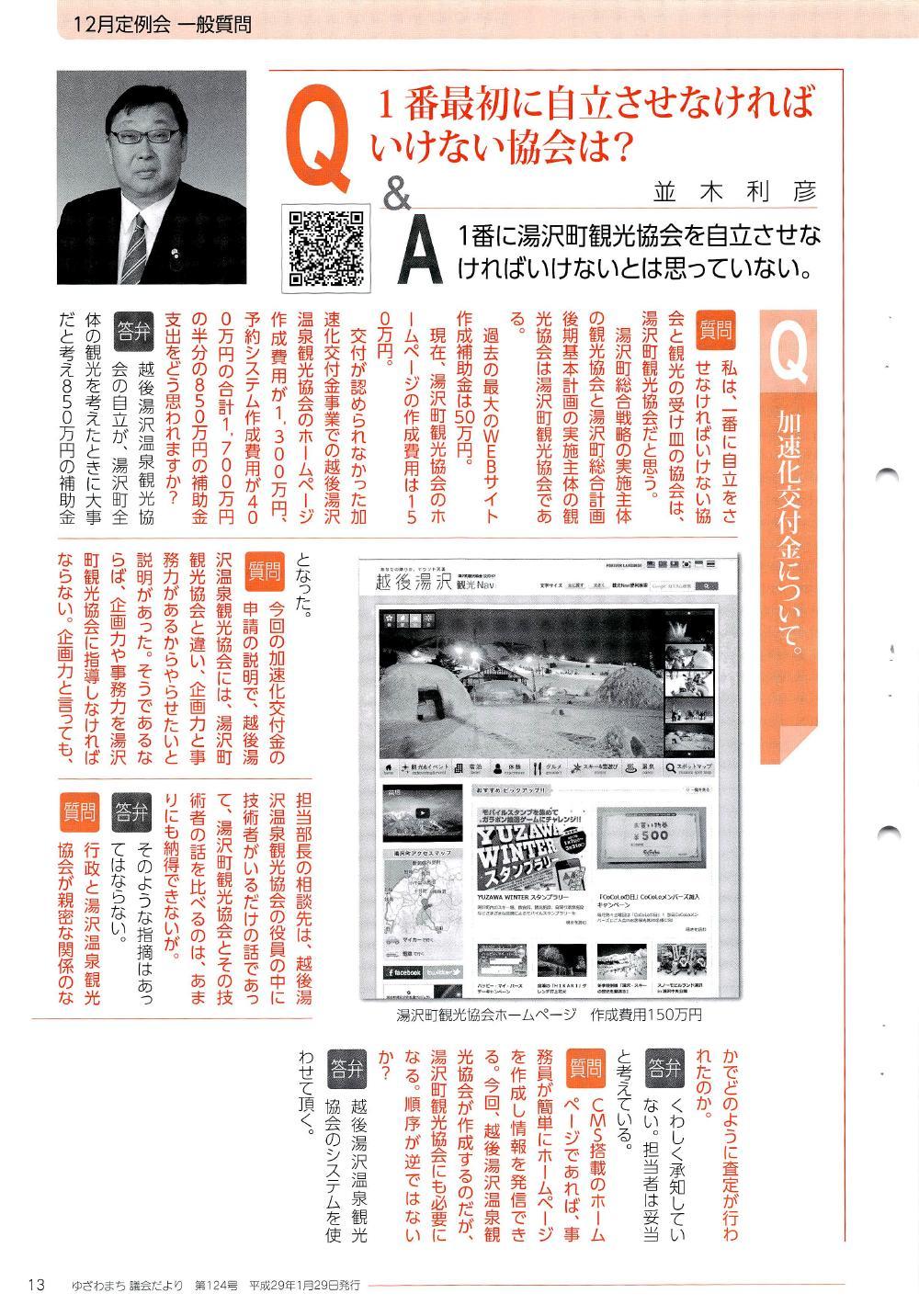 2015/12/10 湯沢町議会 12月定例会 一般質問にて