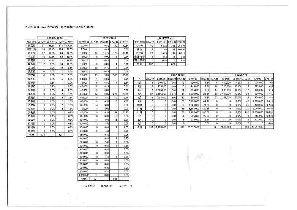 平成28年度 ふるさと納税 寄付実績に基づく分析表