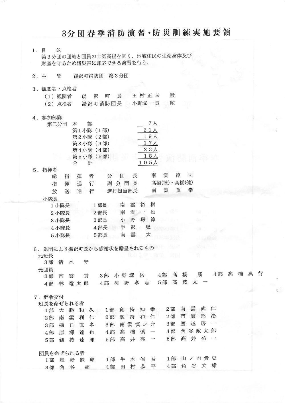 湯沢町消防団3分団 消防演習、防災訓練 ご苦労様でした。5月のお忙しい中、私達住民のために大切な時間を演習、訓練と使用して頂き誠にありがとうございました。