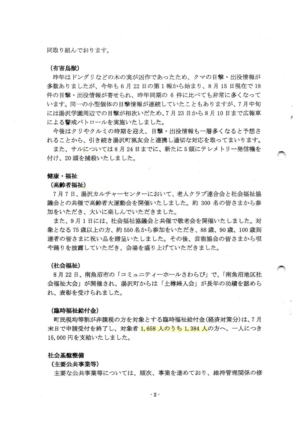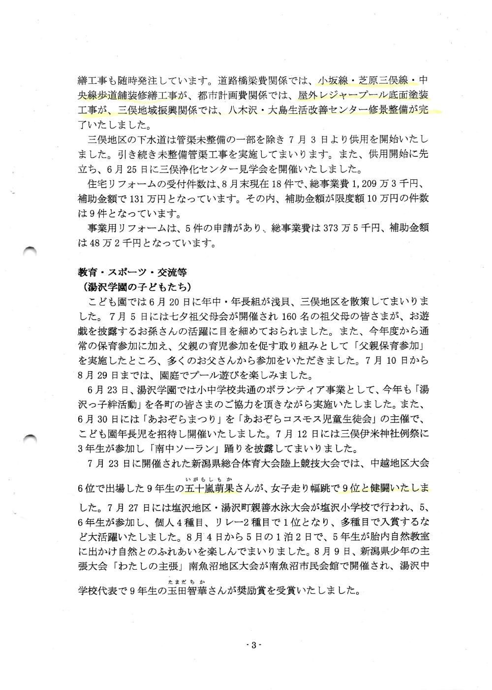 湯沢町議会 9月定例会 行政報告