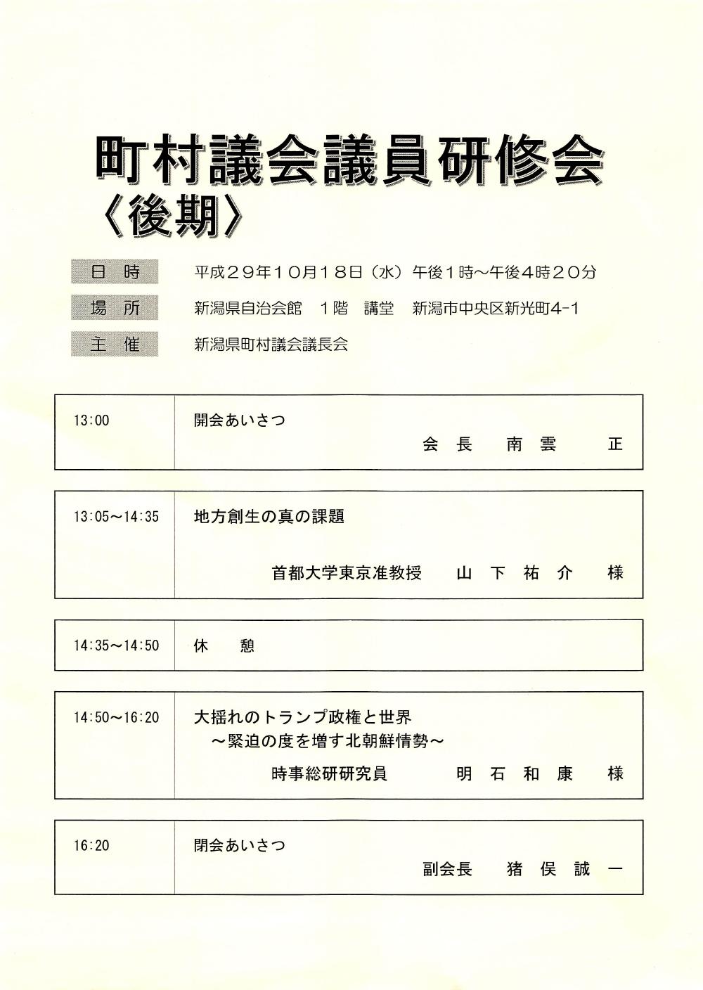 町村議会議員研修会 20171018