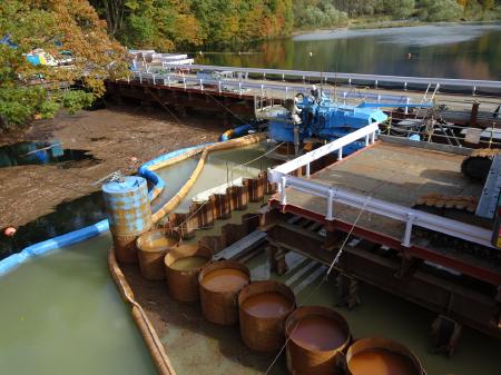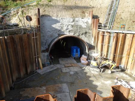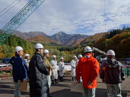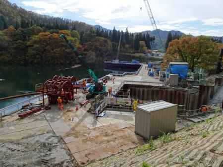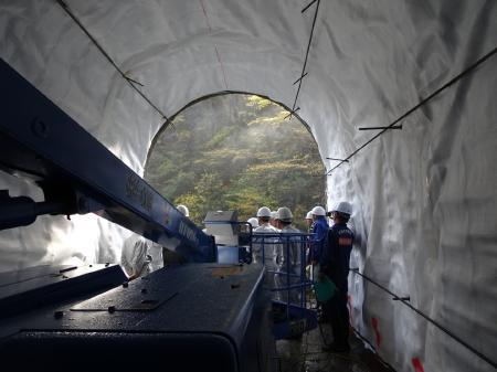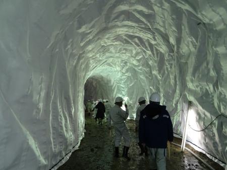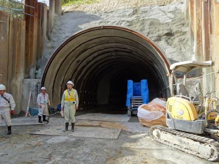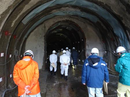 仮排水路貫通状況視察