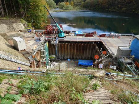 補強工事仮排水路貫通