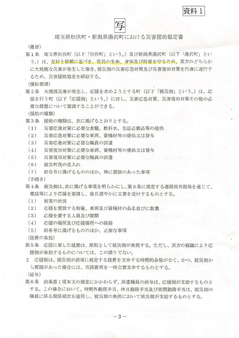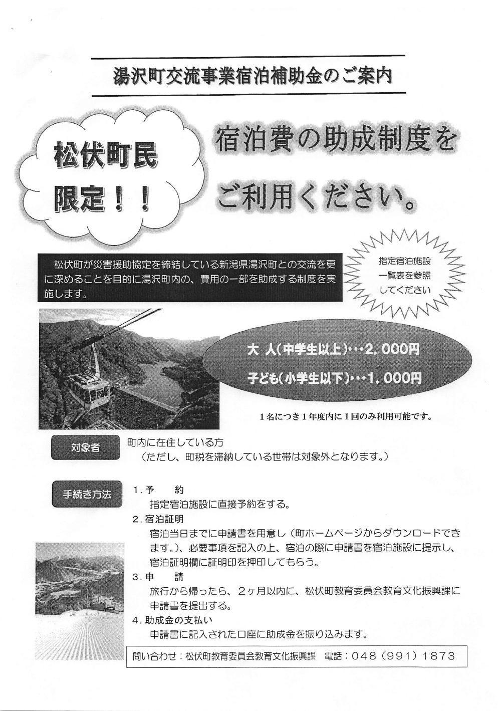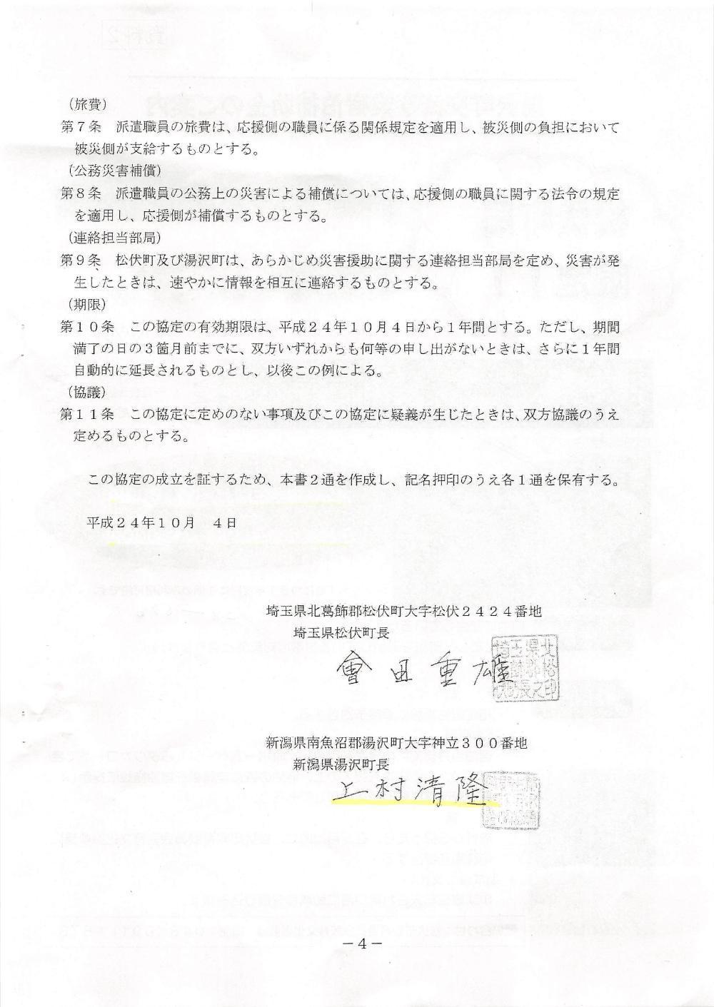 埼玉県松伏町は災害援助協定を締結しています。なおかつ湯沢町交流事業宿泊補助金を実施頂いている町です。ありがたいです。