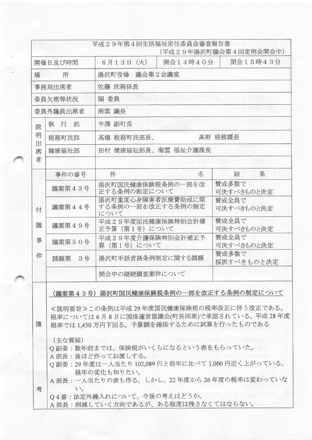 生活福祉常任委員会 H29年 第04回 2017/06/13