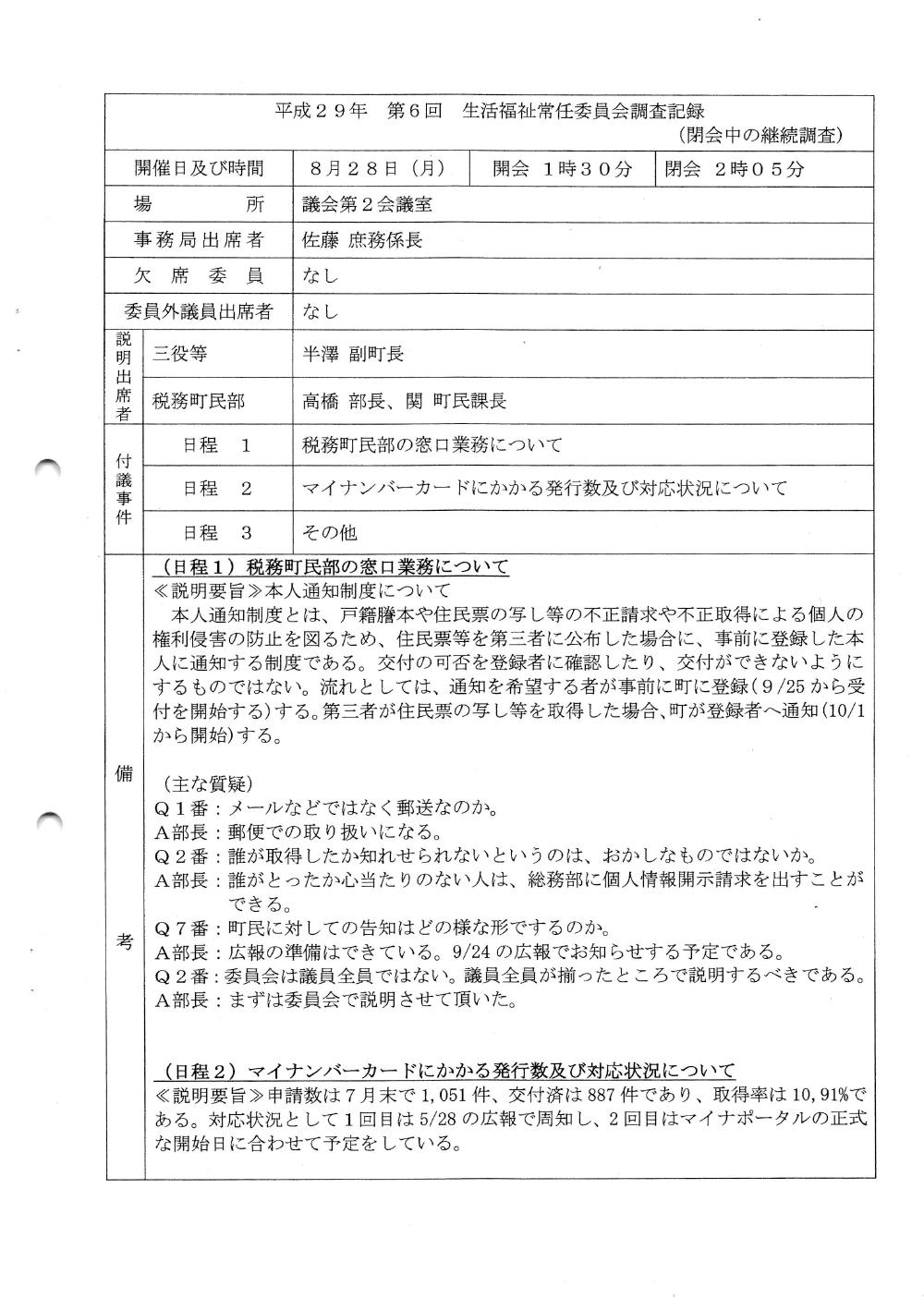生活福祉常任委員会 H29年 第06回 2017/08/28