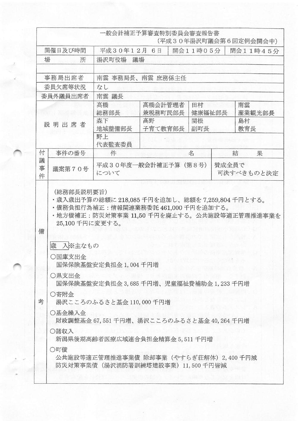 一般会計補正予算審査特別委員会 H30年   2018/12/06