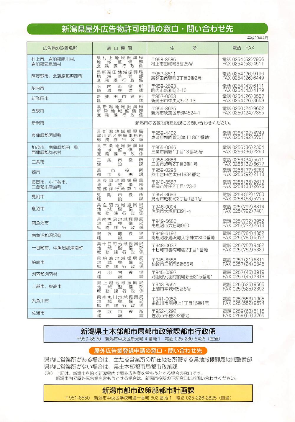 野外広告物のしおり 新潟県