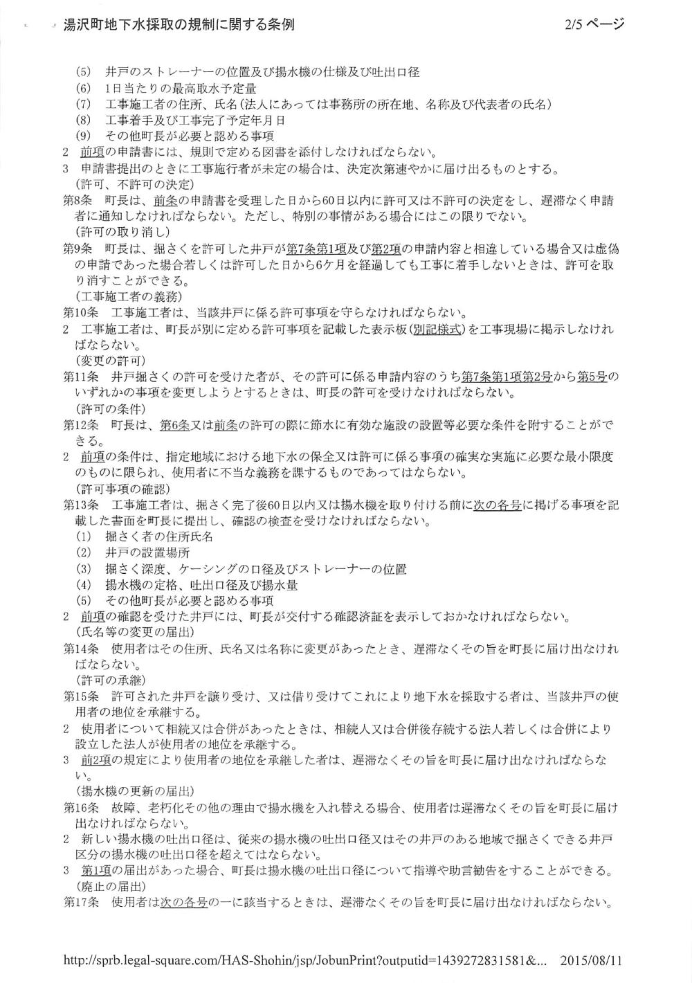 湯沢町地下水採取の規制に関する条例