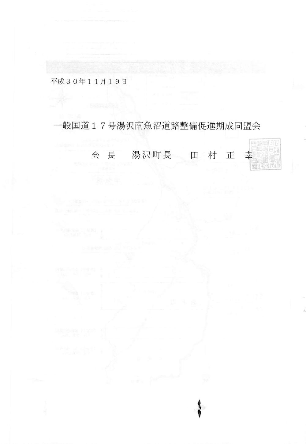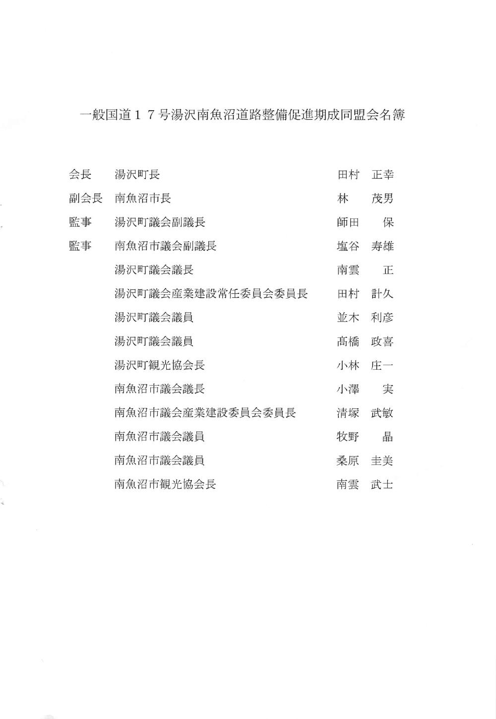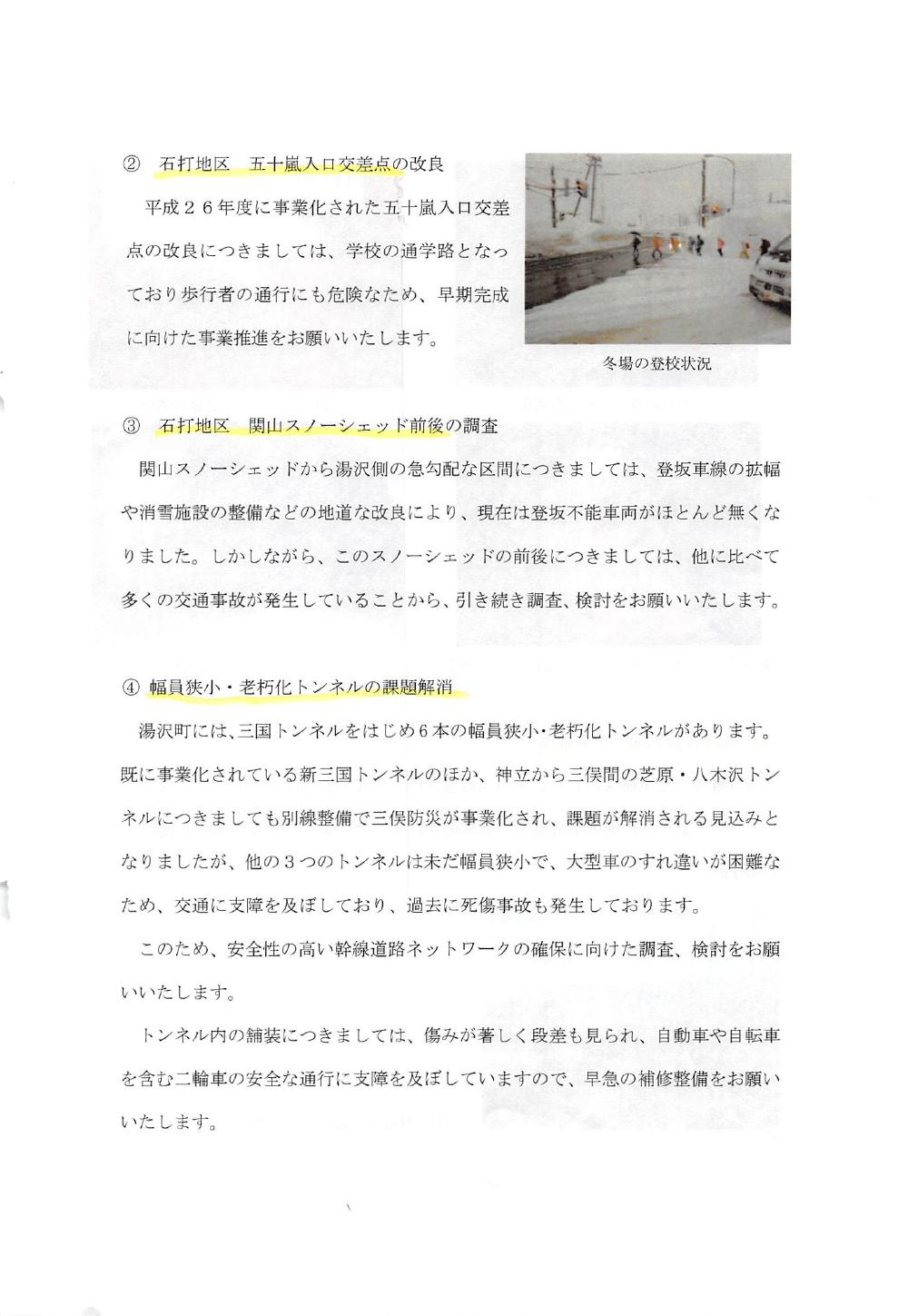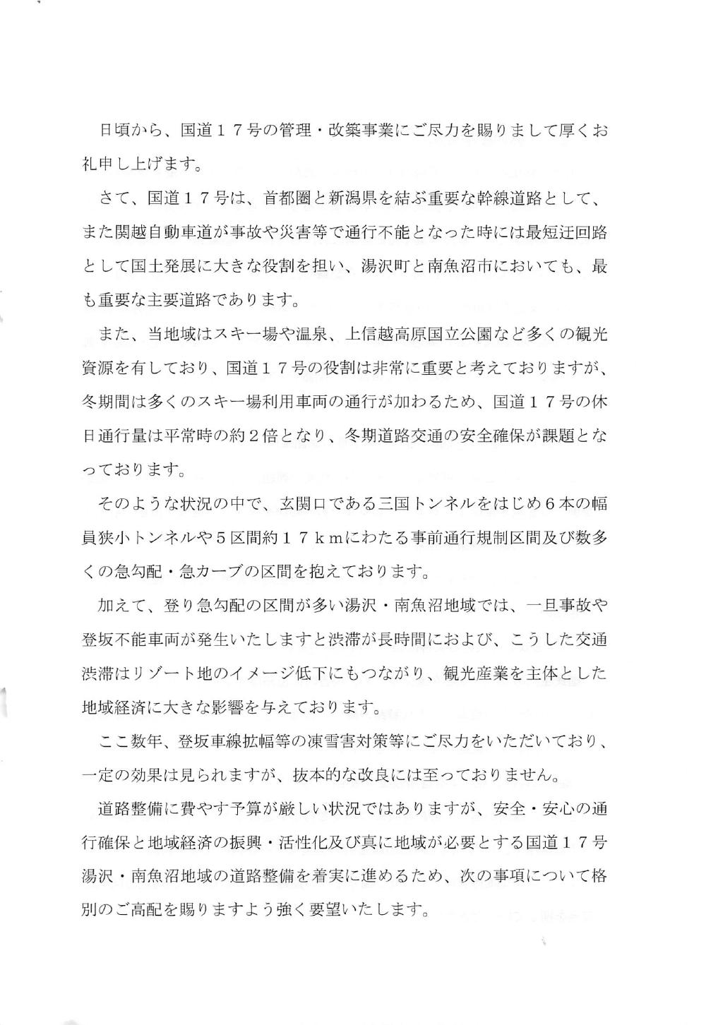 国道17号湯沢、南魚沼地域の道路整備促進に関する要望書