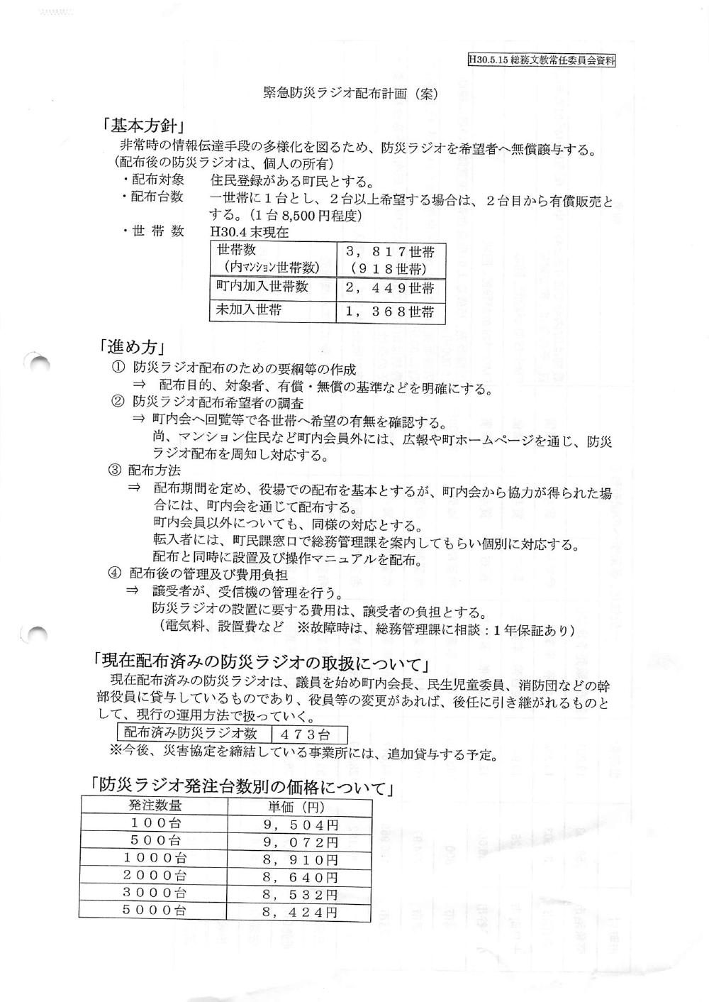 緊急防災ラジオ配布計画 2018/05/15
