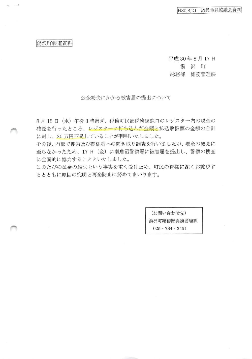 公金紛失について