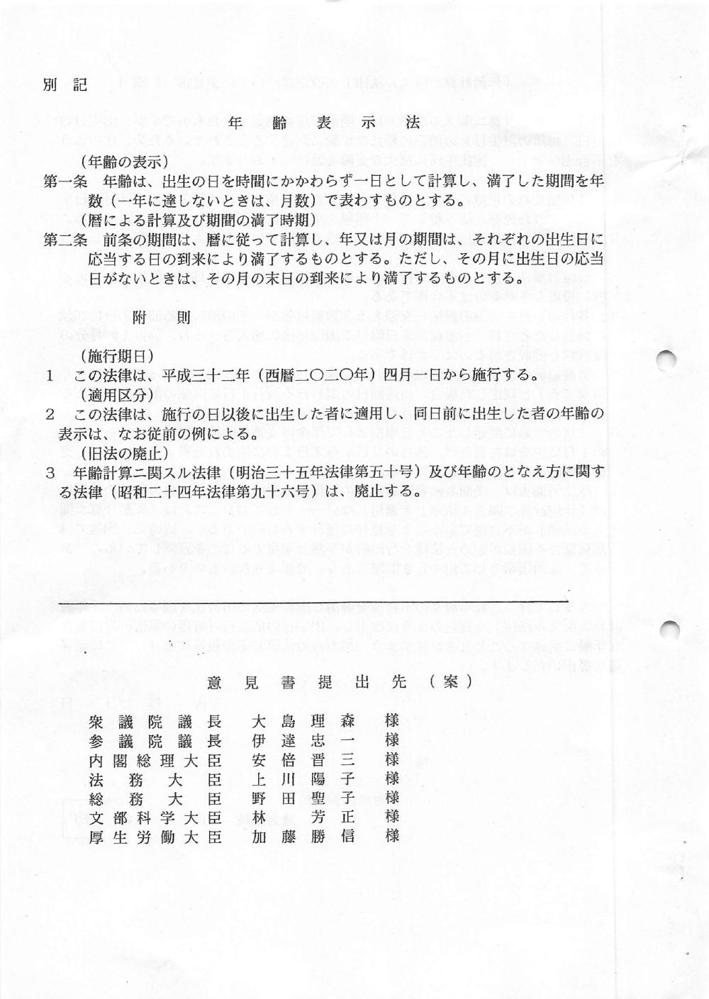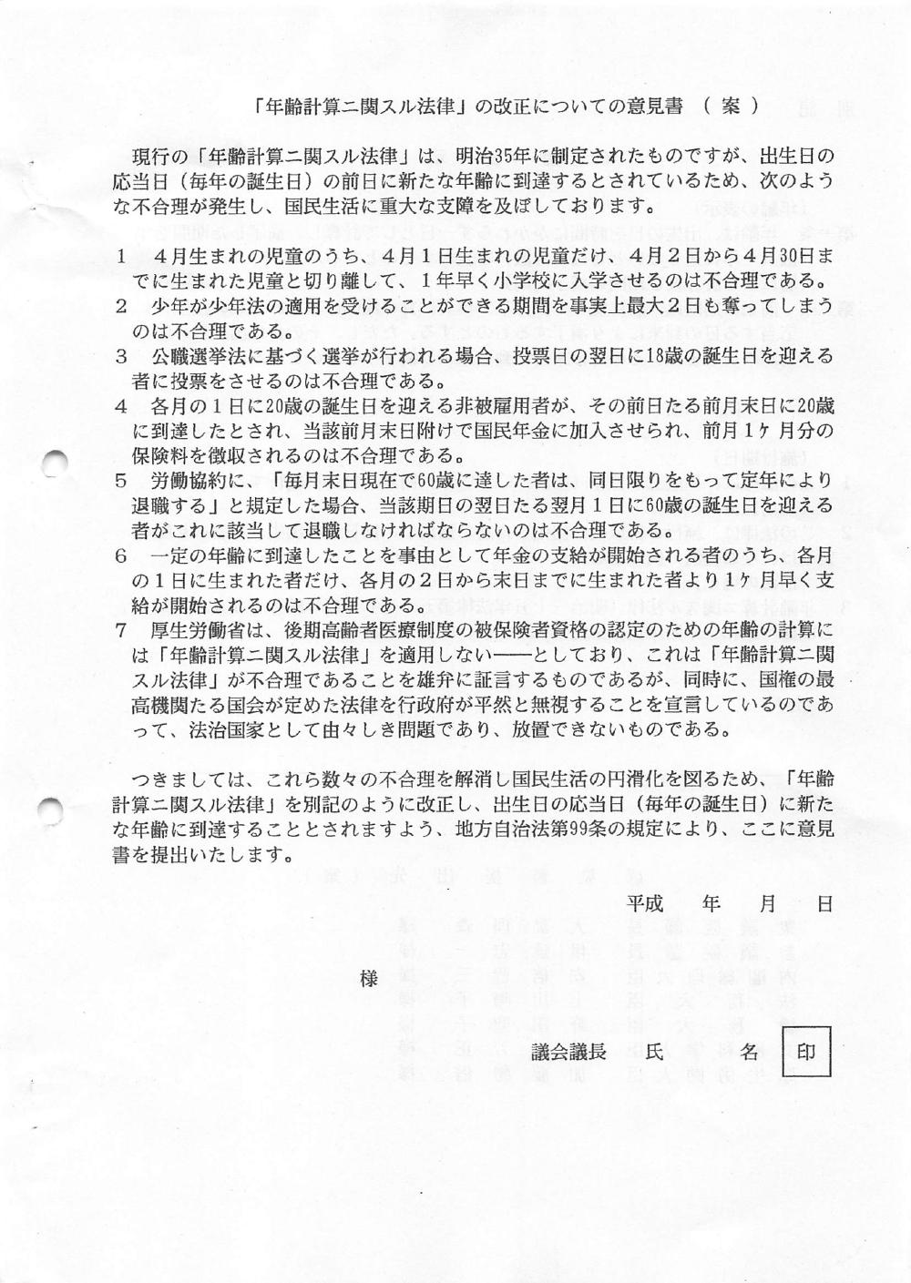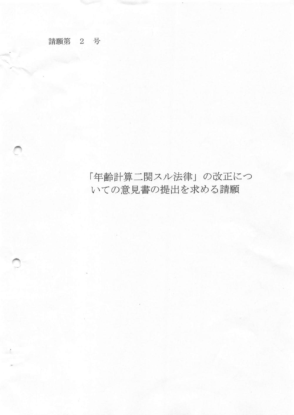 「年齢計算二関スル法律」の改正についての意見書の提出を求める請願