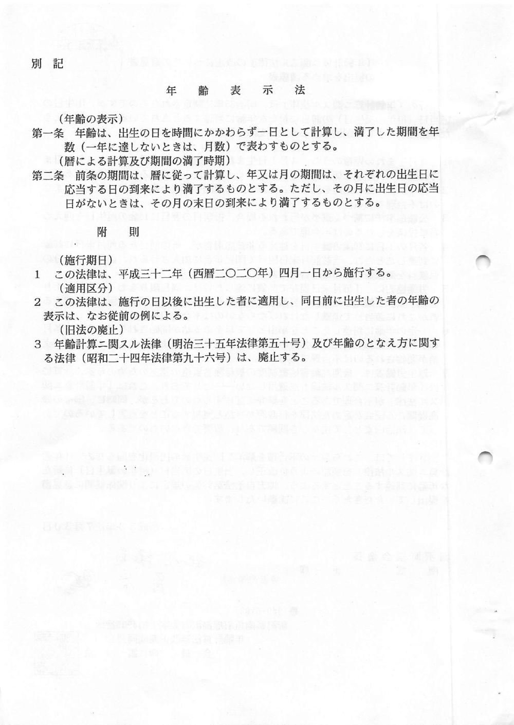 「年齢計算二関スル法律」の