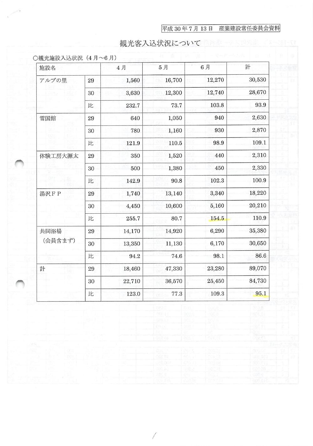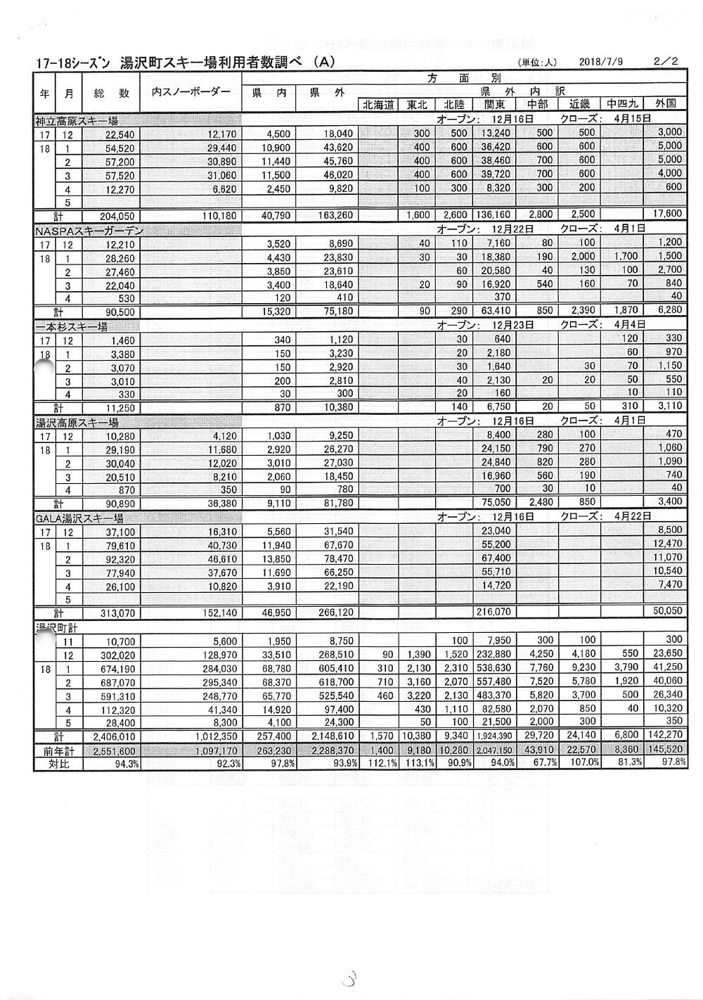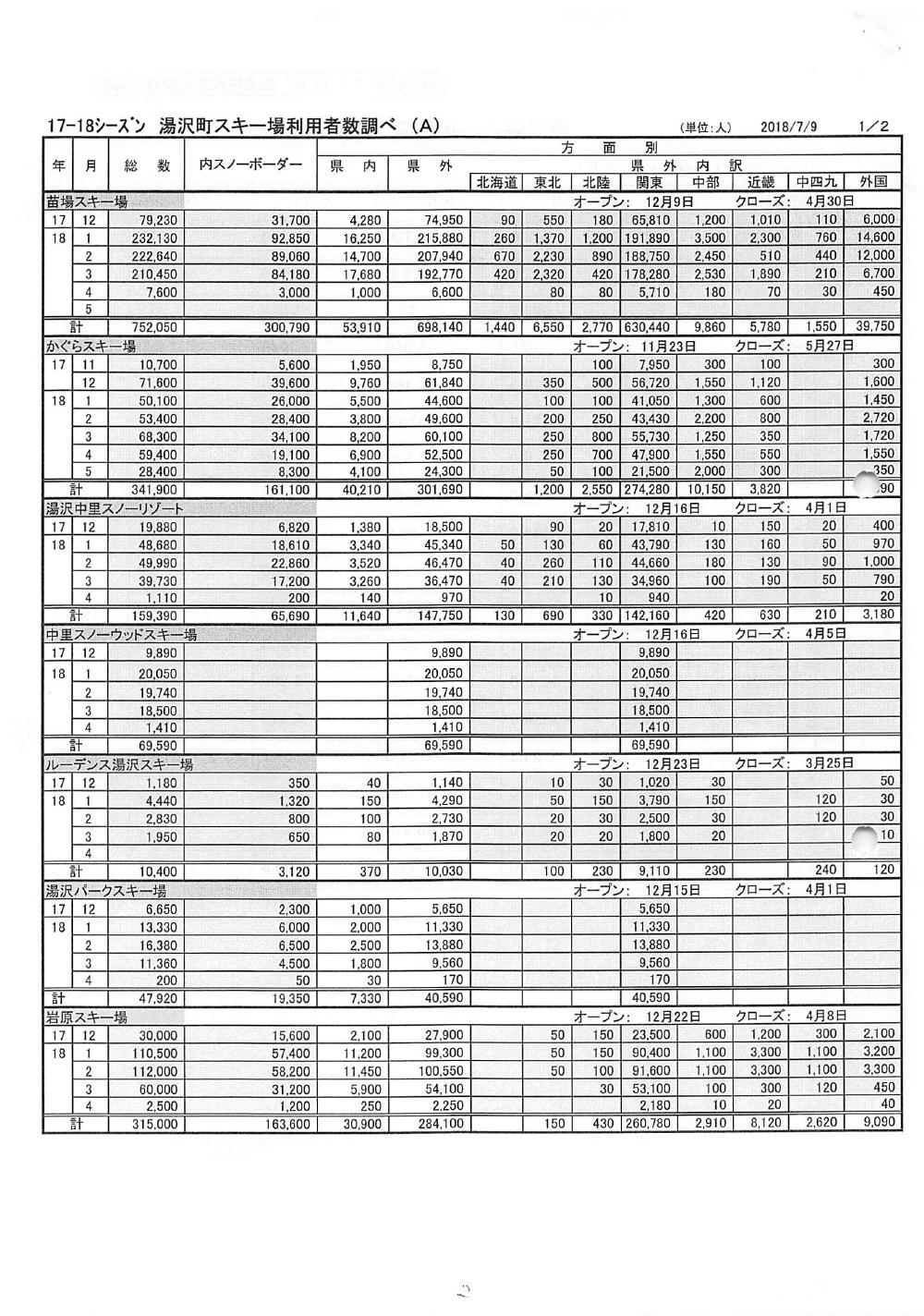 ・湯沢高原の入込等