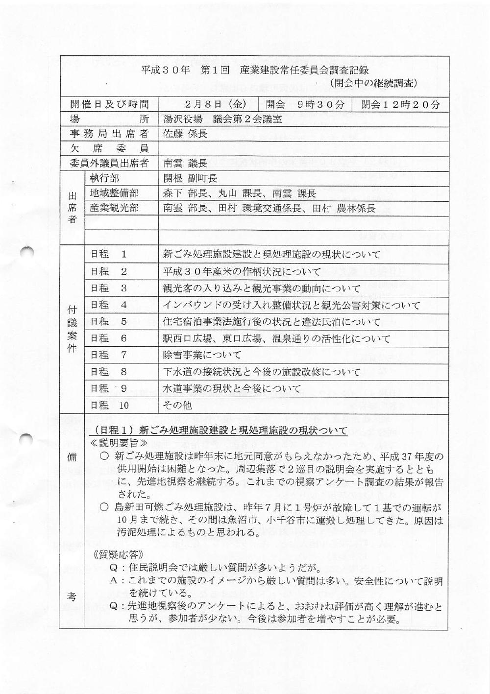 産業建設常任委員会 H31年 第01回  2019/02/08