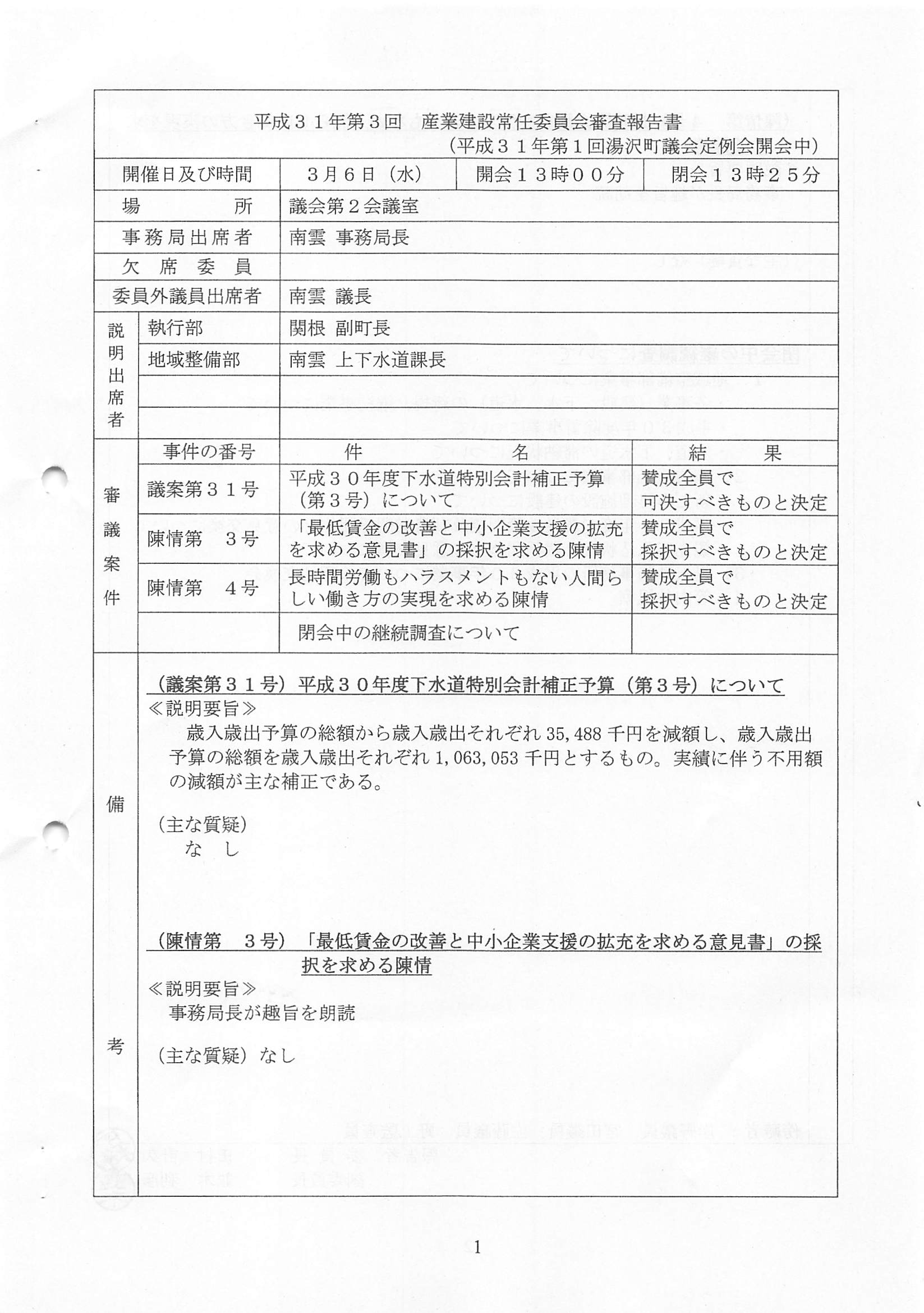 産業建設常任委員会 H31年 第03回  2019/03/06