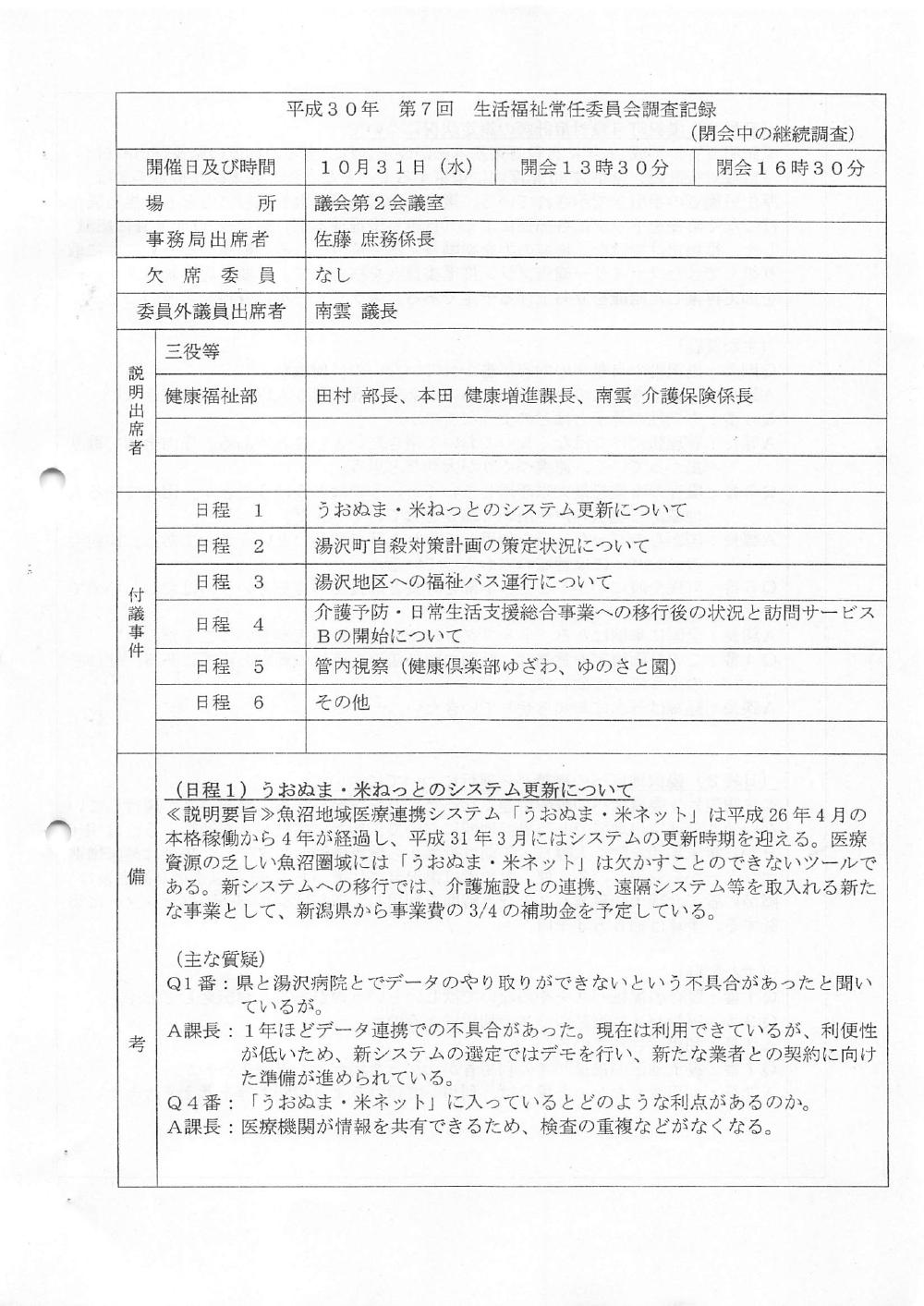 生活福祉常任委員会 H30年 第07回 2018/10/31