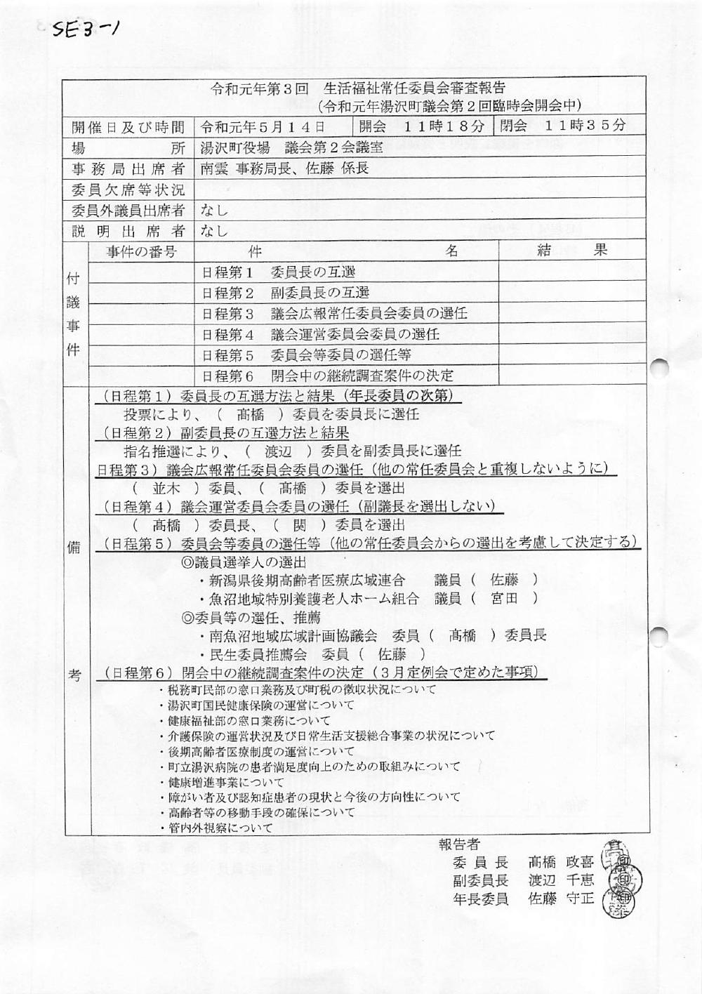 20190514  生活福祉常任委員会03回 ・委員長互選 他 |