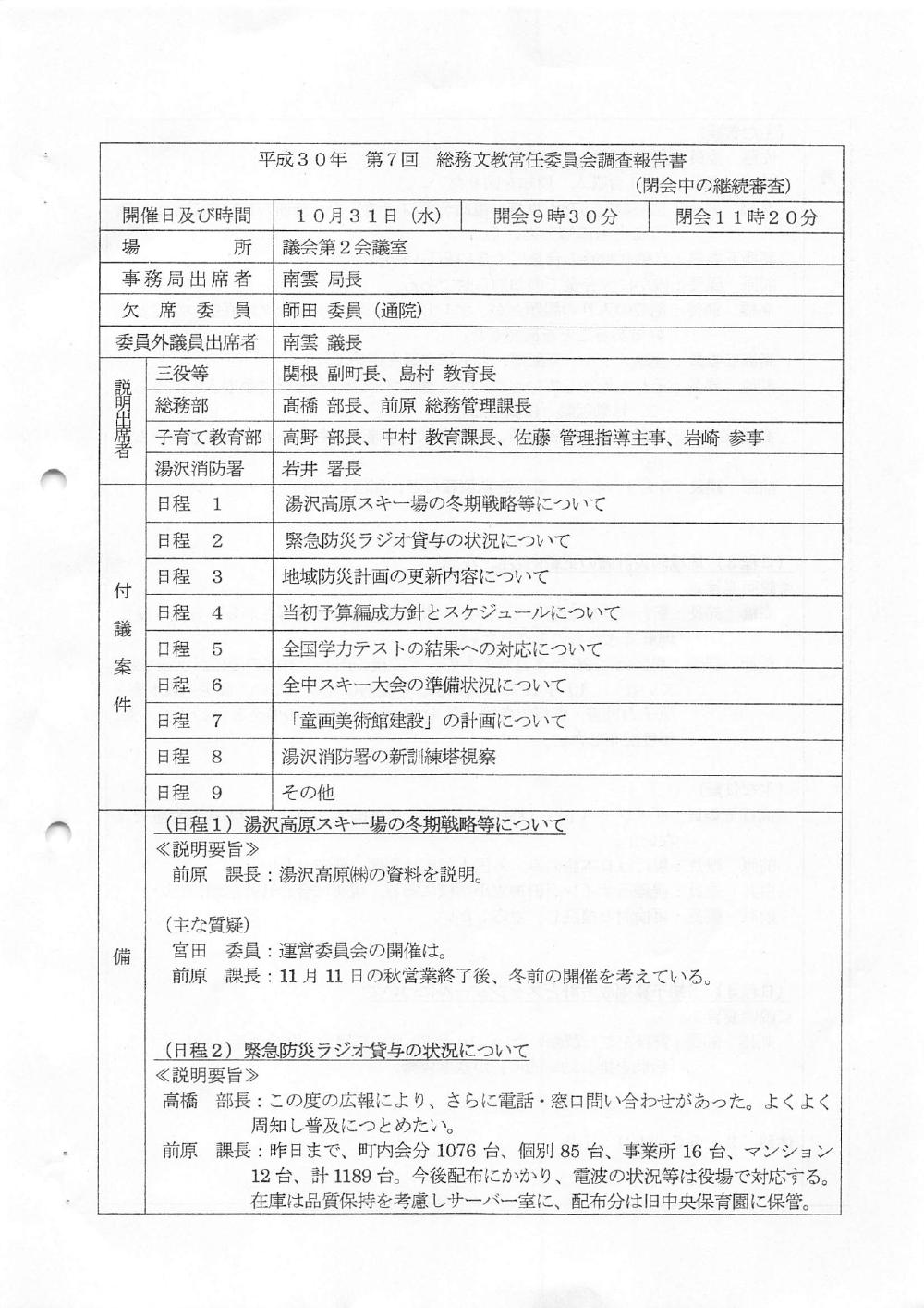 総務文教常任委員会 H30 第07回 2018/10/31