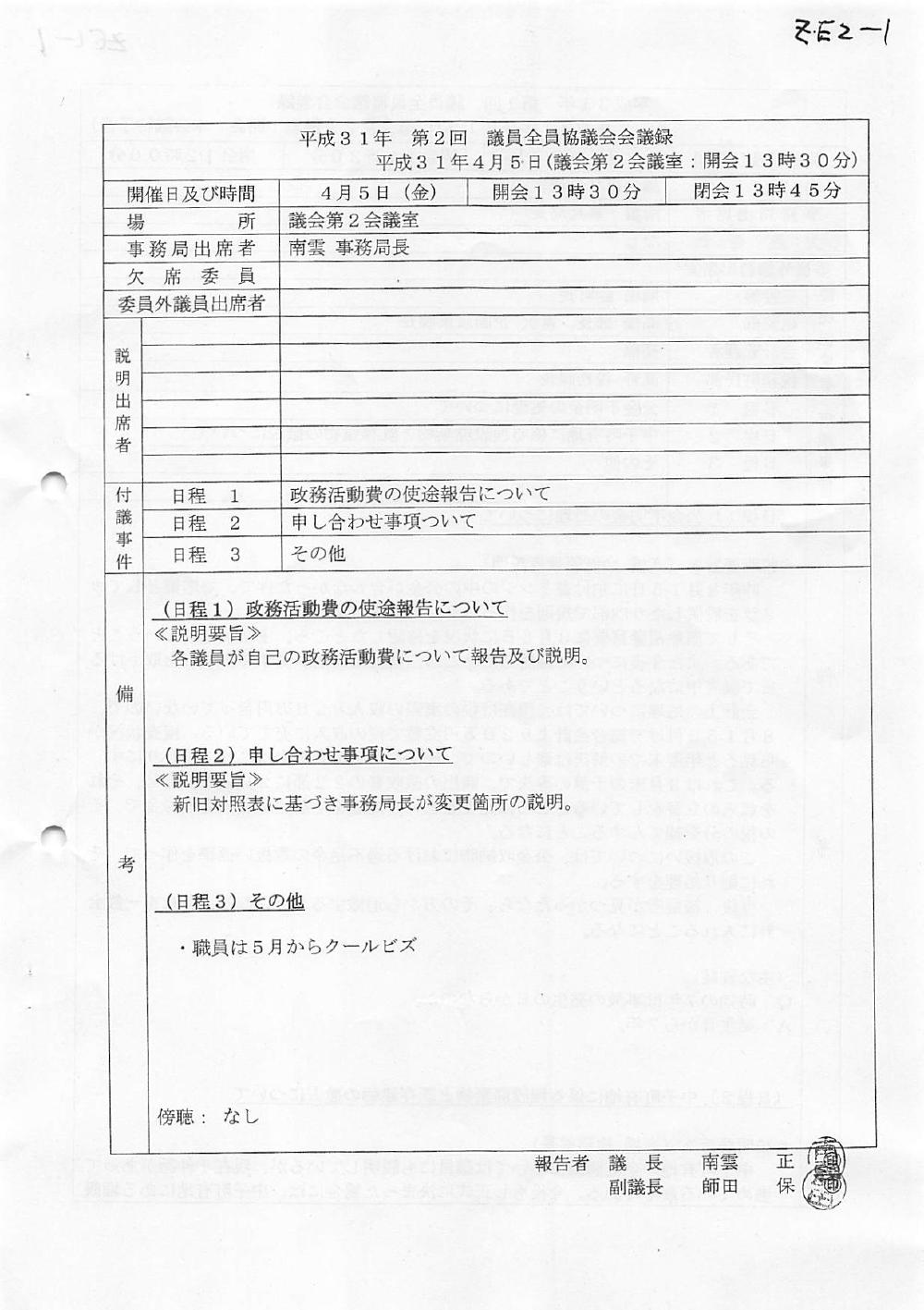 議員全員協議会 R1年 第02回  2019/04/05