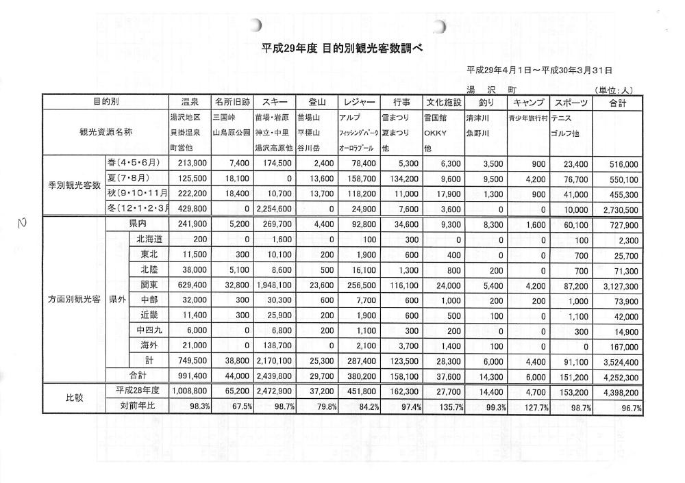 平成29年度観光客入込状況について