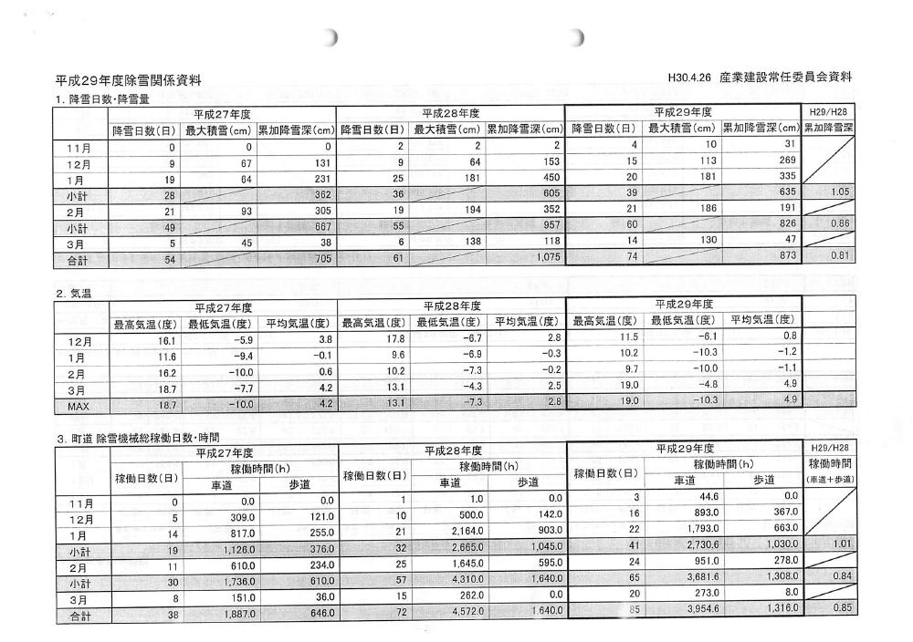 平成29年度除雪事業について